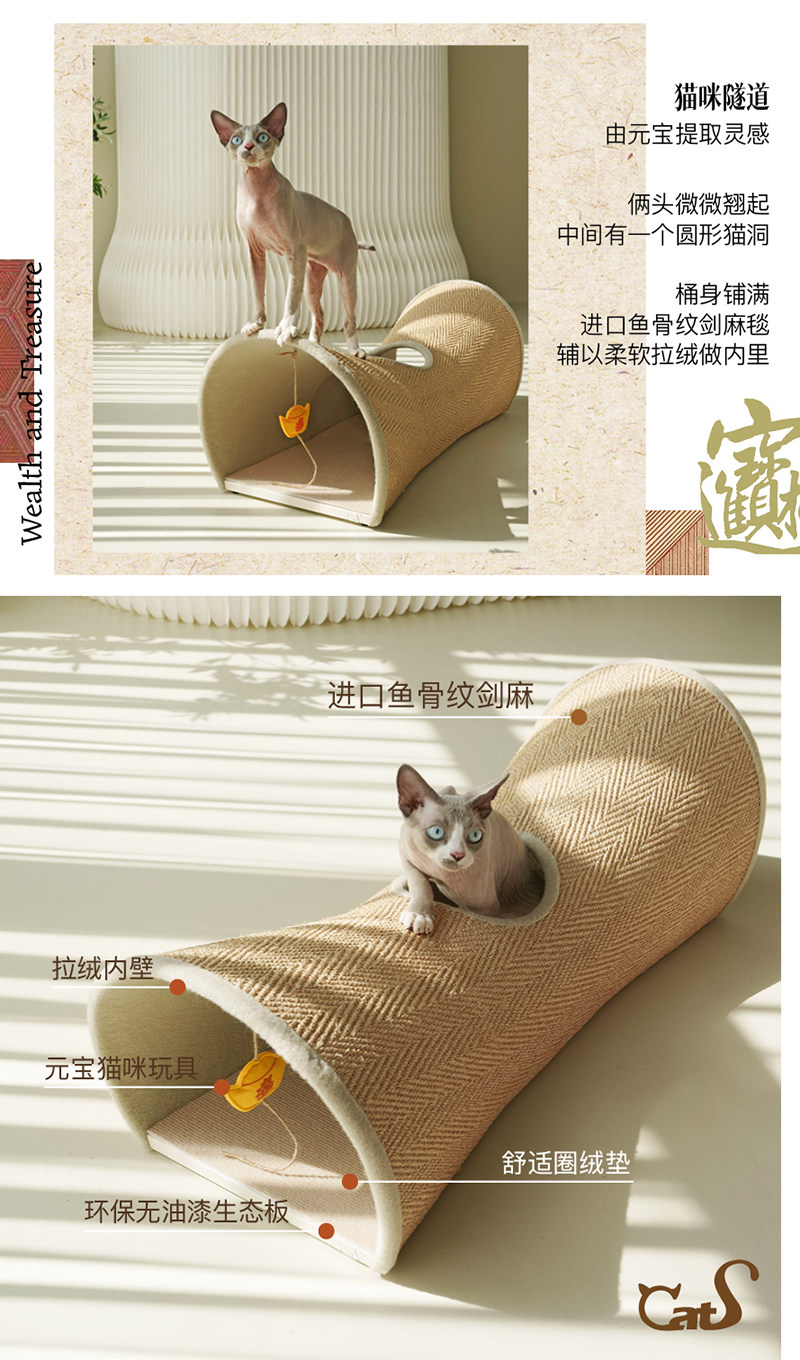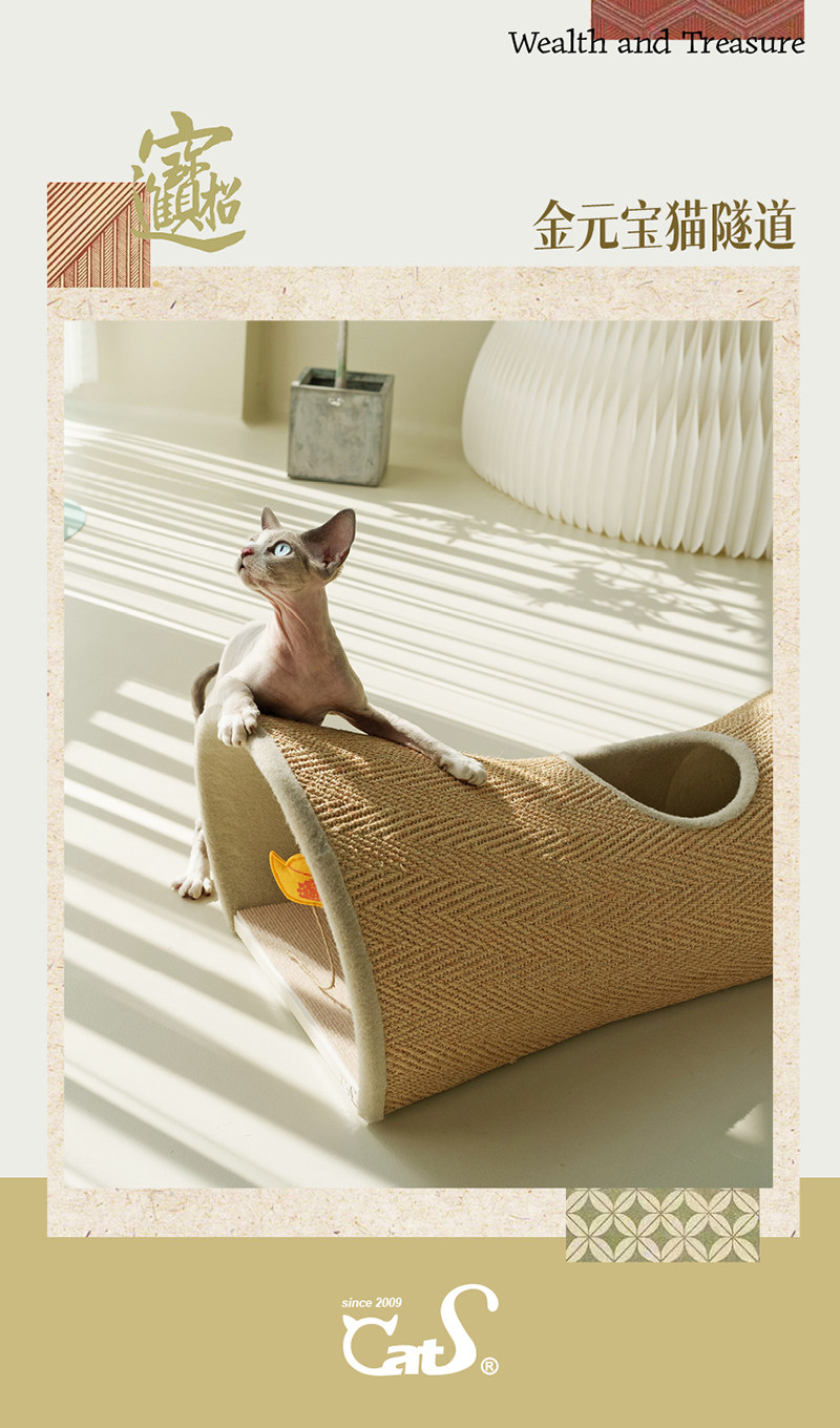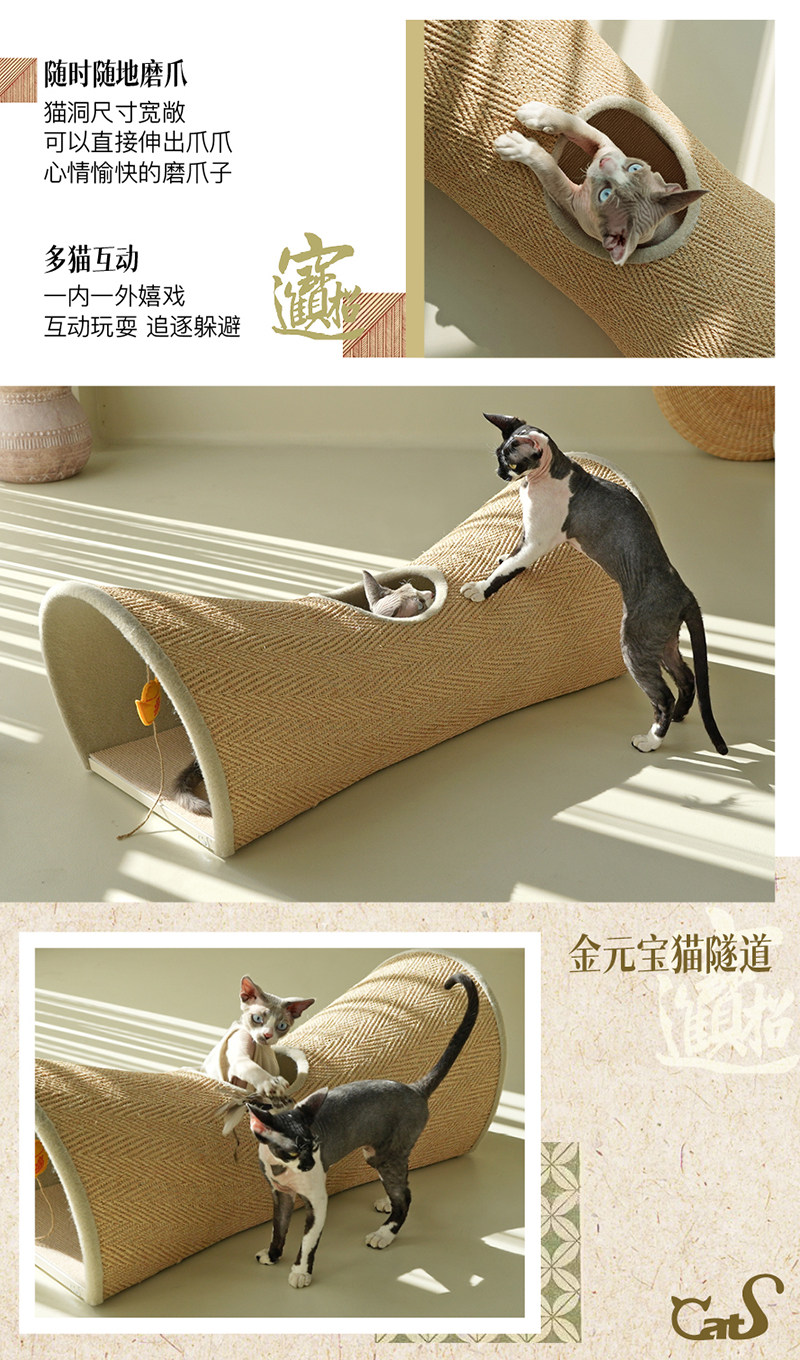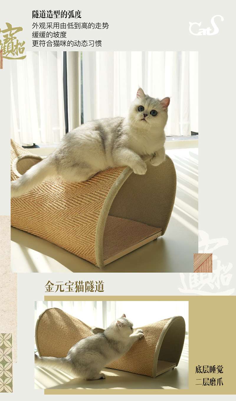 【CatS 貓事】人間煙火系列木質貓隧道|金榜題名國風設計,劍麻抓板二合一大型貓窩