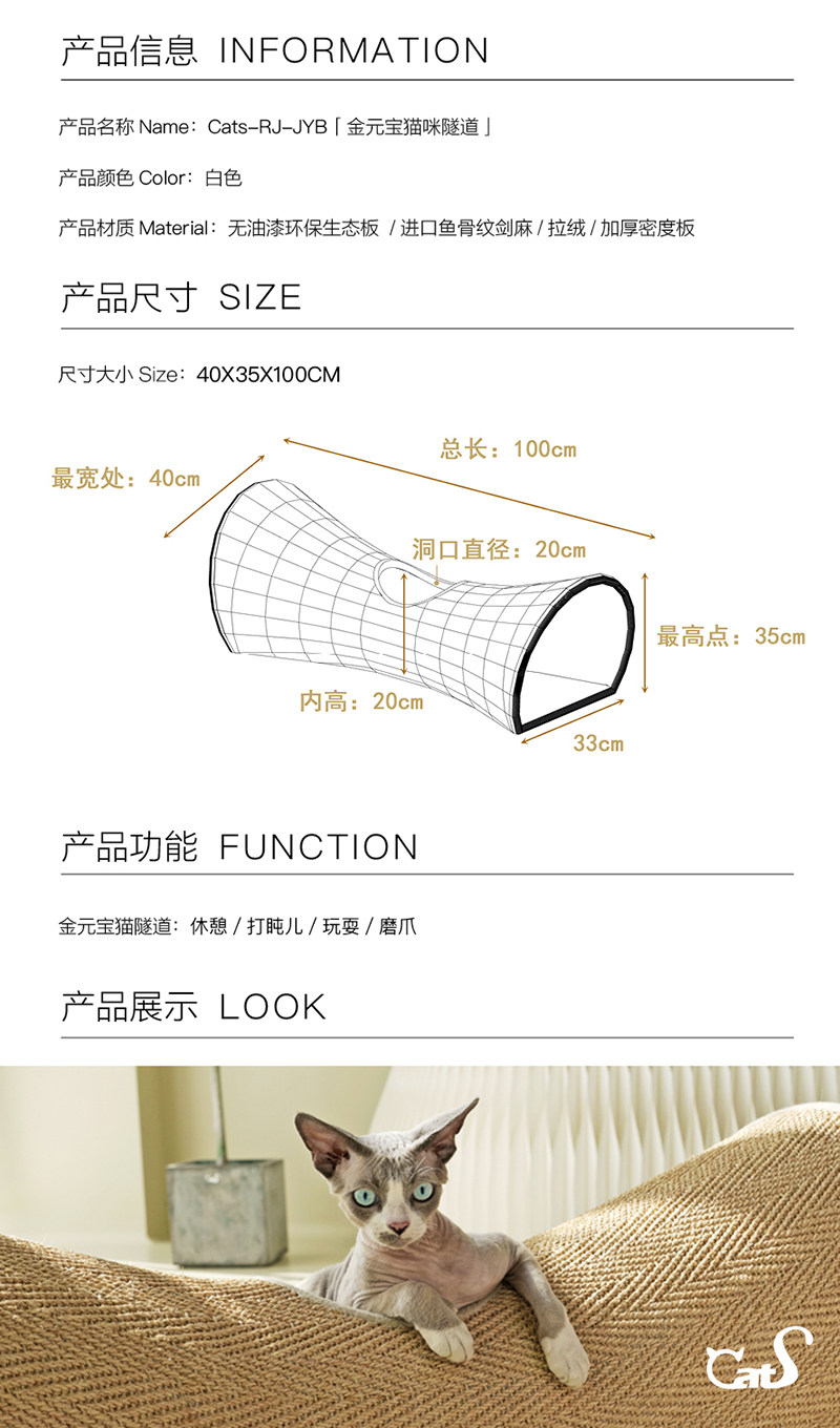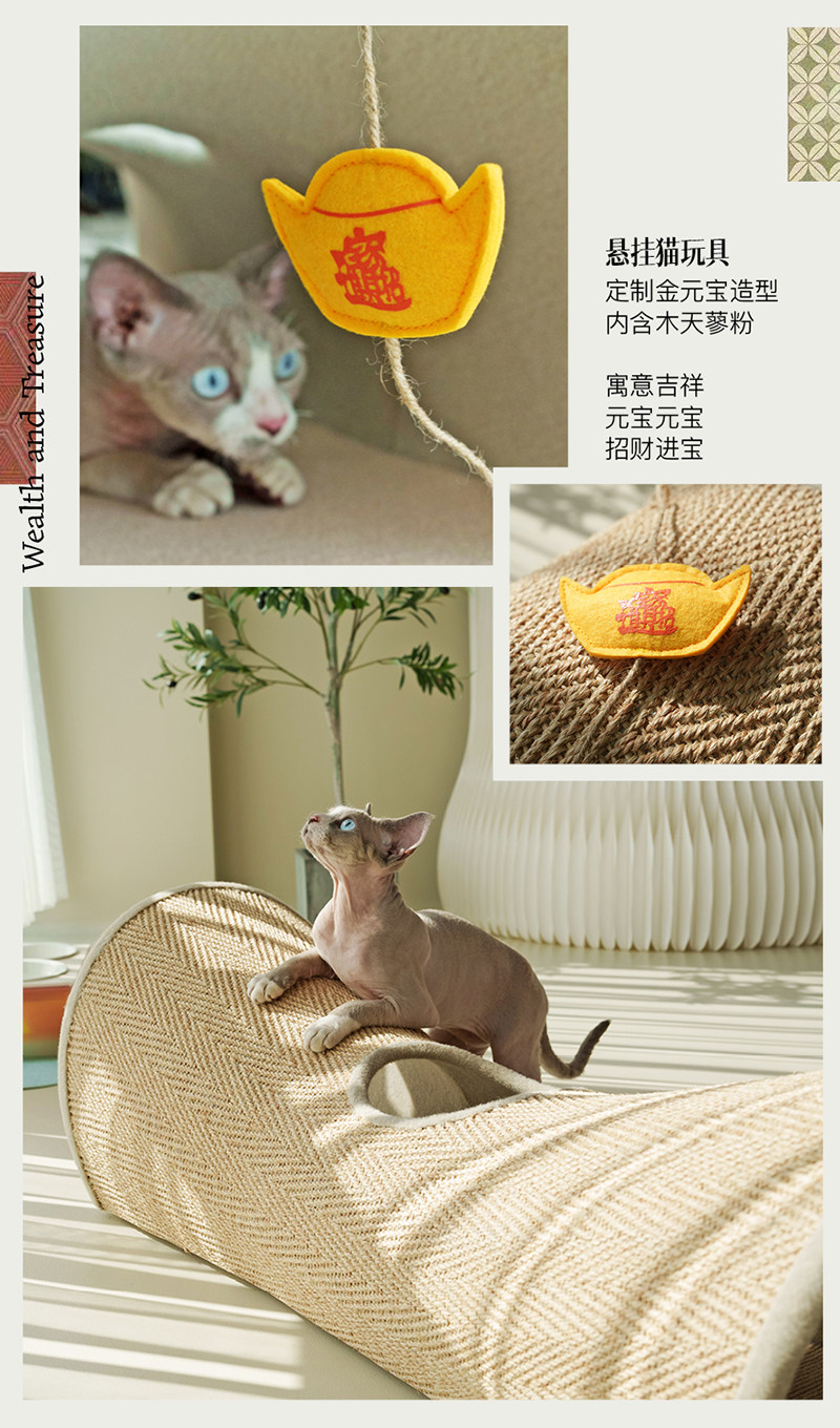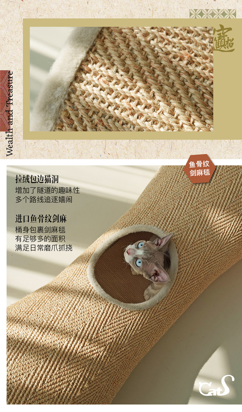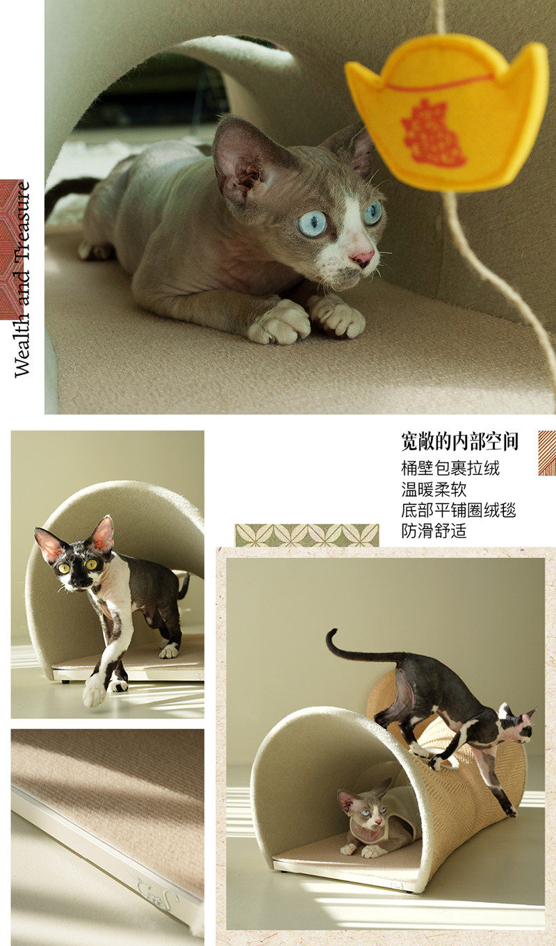 【CatS 貓事】人間煙火系列木質貓隧道|金榜題名國風設計,劍麻抓板二合一大型貓窩