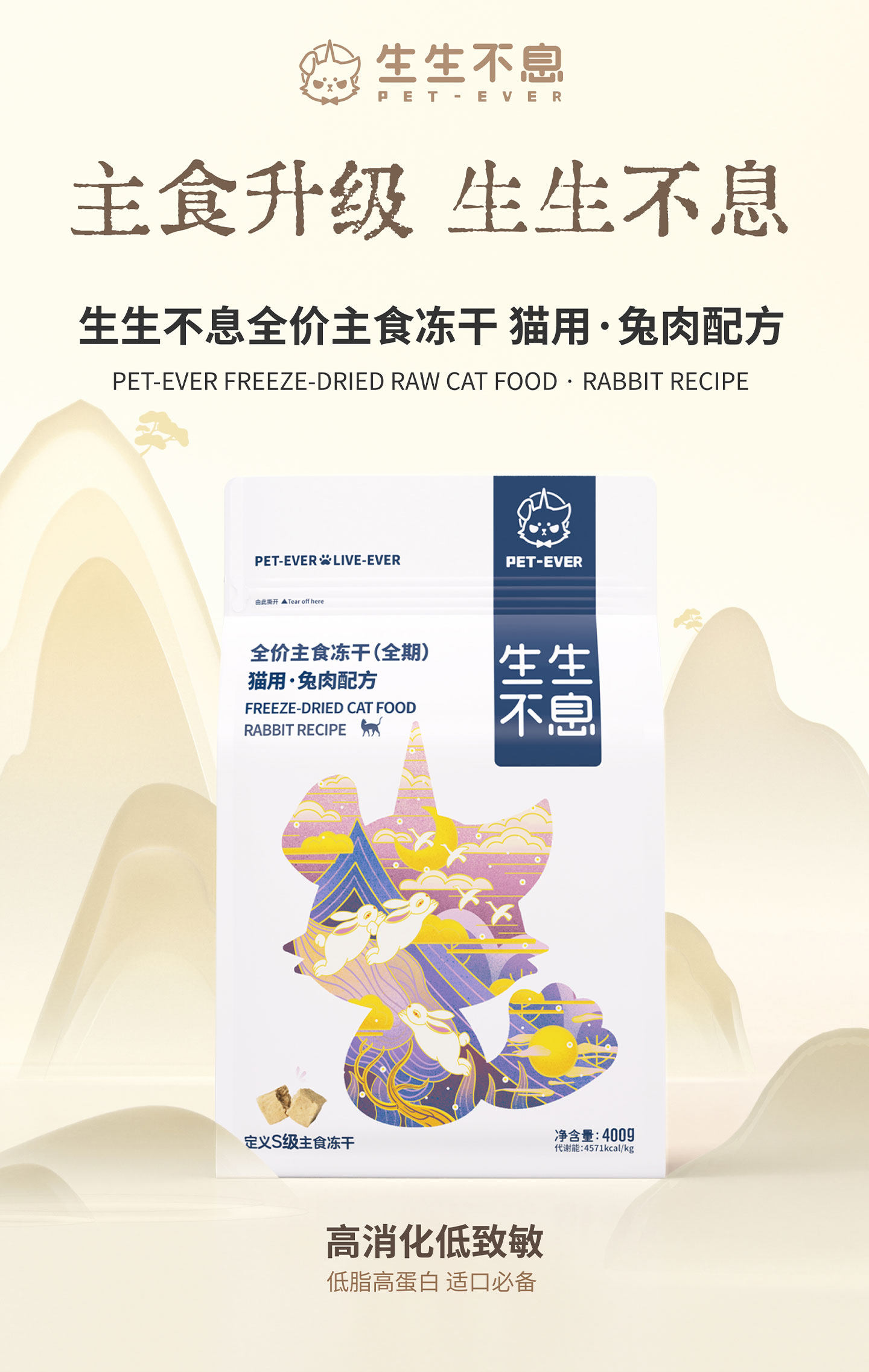 【生生不息】全價生骨肉凍乾貓糧 400g|珍稀兔肉配方,低敏高蛋白美毛主食,模擬野外獵食結構,全齡貓適用之生食級營養餐,告別過敏、打造絲滑皮毛