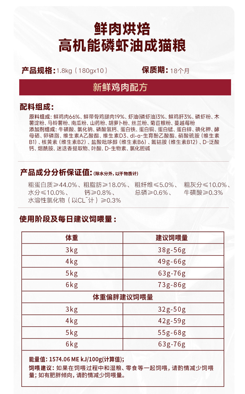 Phospho shrimp oil roast squab formula kitten / 1 8kg 180g x 10 small bags6172017979151