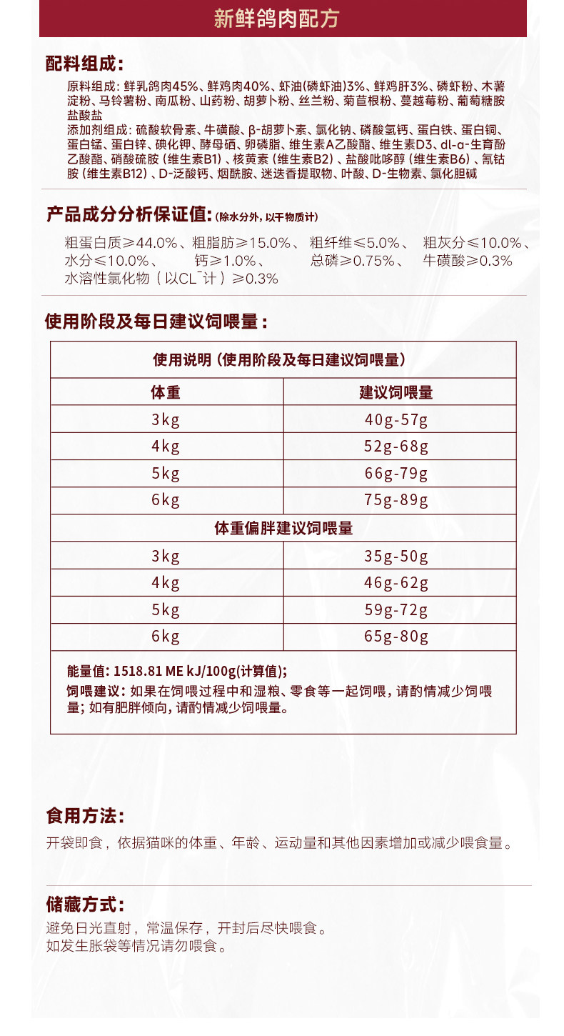 Roast squab formula adult cat with shrimp oil / 1 8kg 180g x 10 small bags6172017979157
