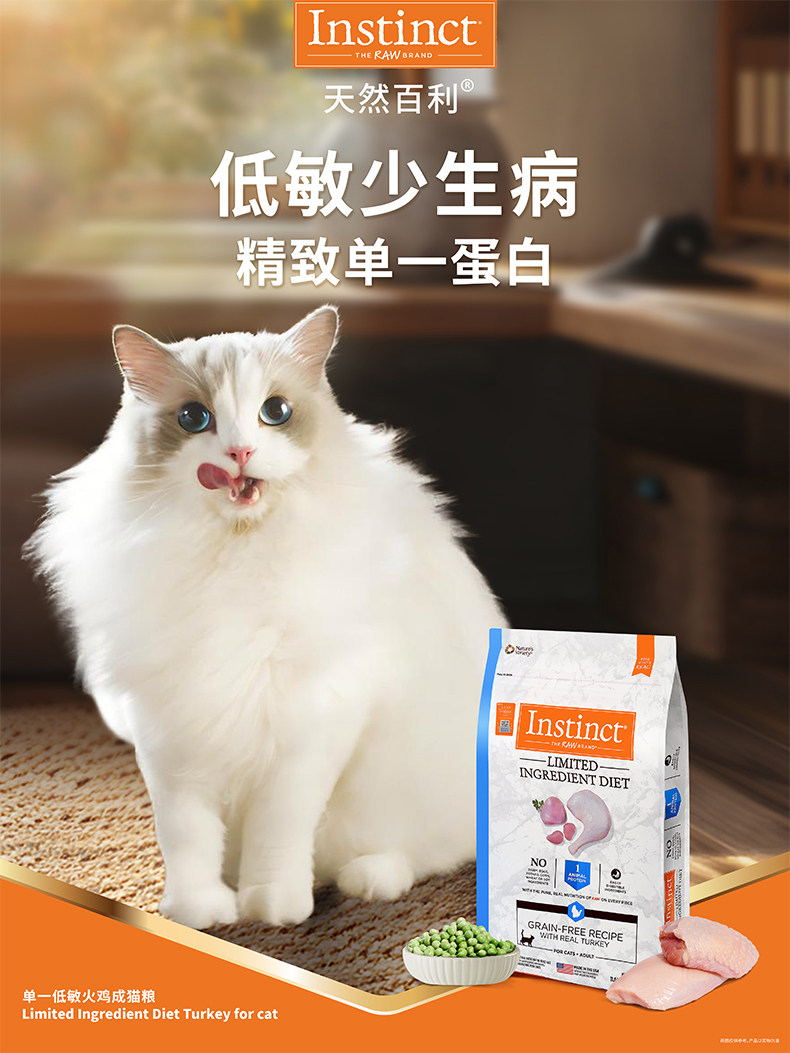 百利 Instinct 低敏火雞肉貓糧 22磅 (10kg)|美國進口 LID 限定成分配方