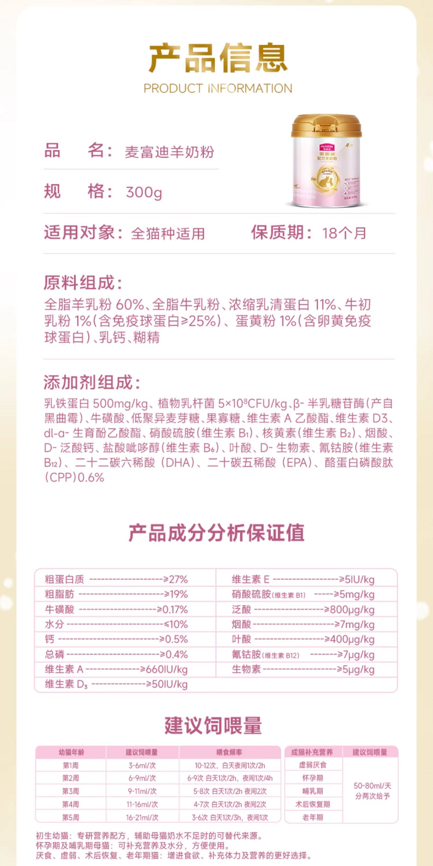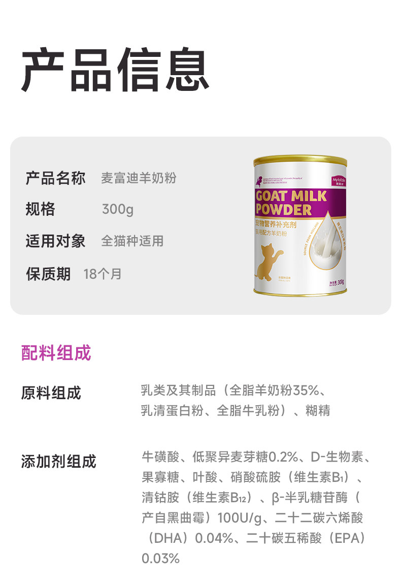麥富迪 (Myfoodie) 貓用羊奶粉|幼貓、成貓及孕貓營養鈣質補充保健品