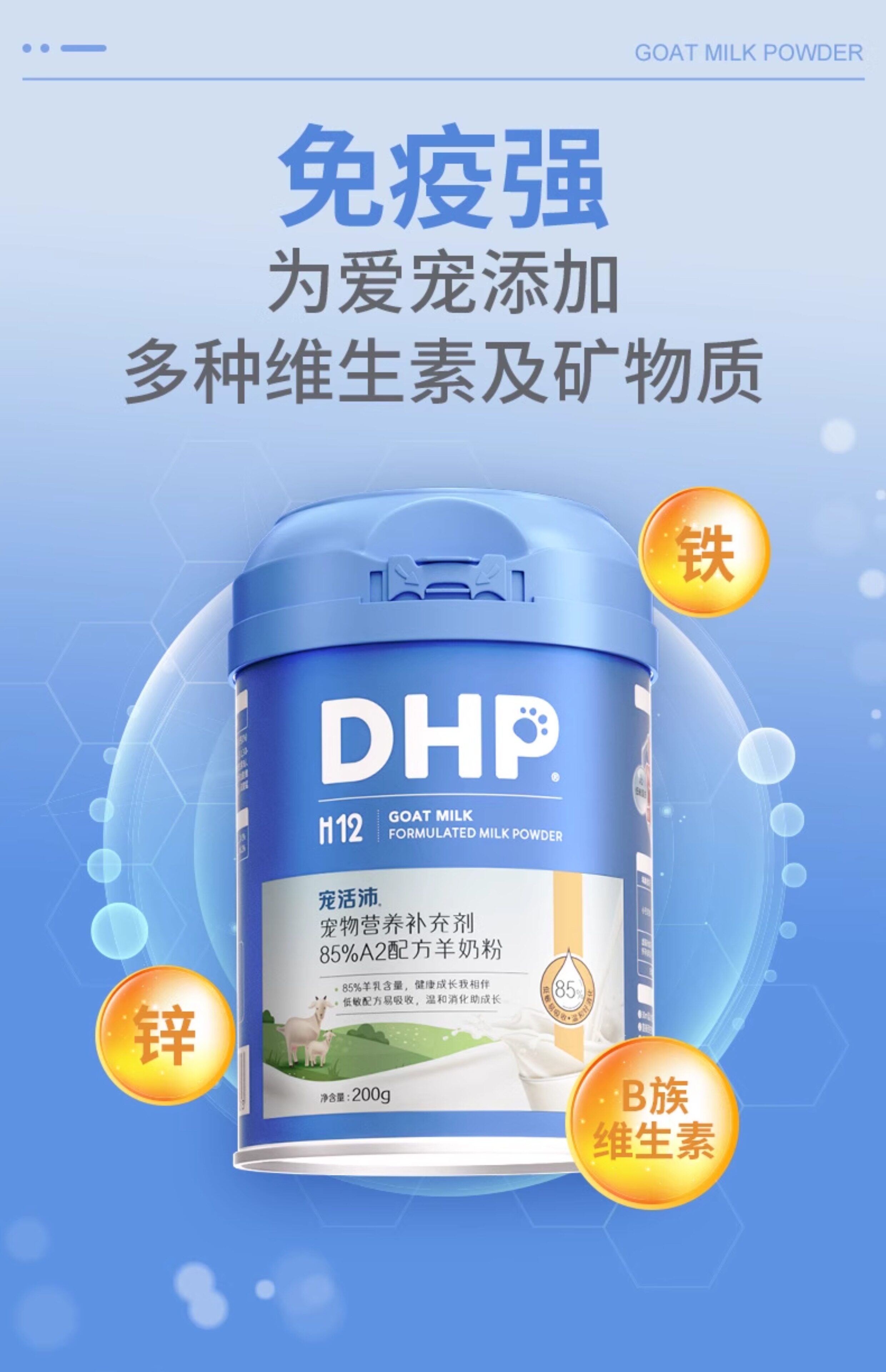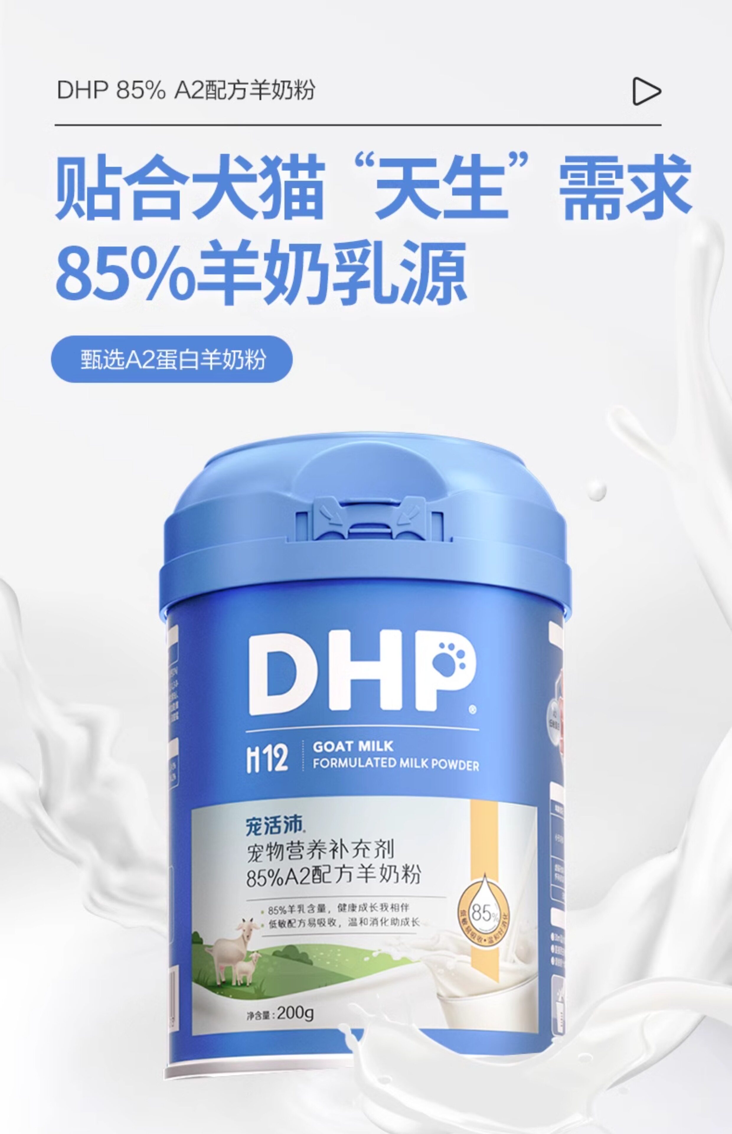 寵活沛 H12 犬貓通用羊奶粉 200g|85% A2 親和配方、易消化高營養補充