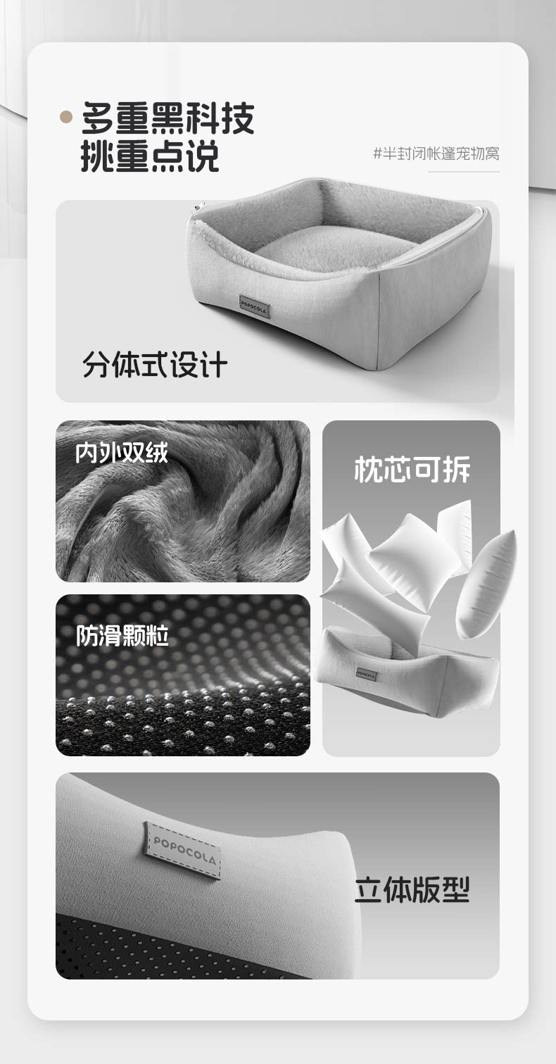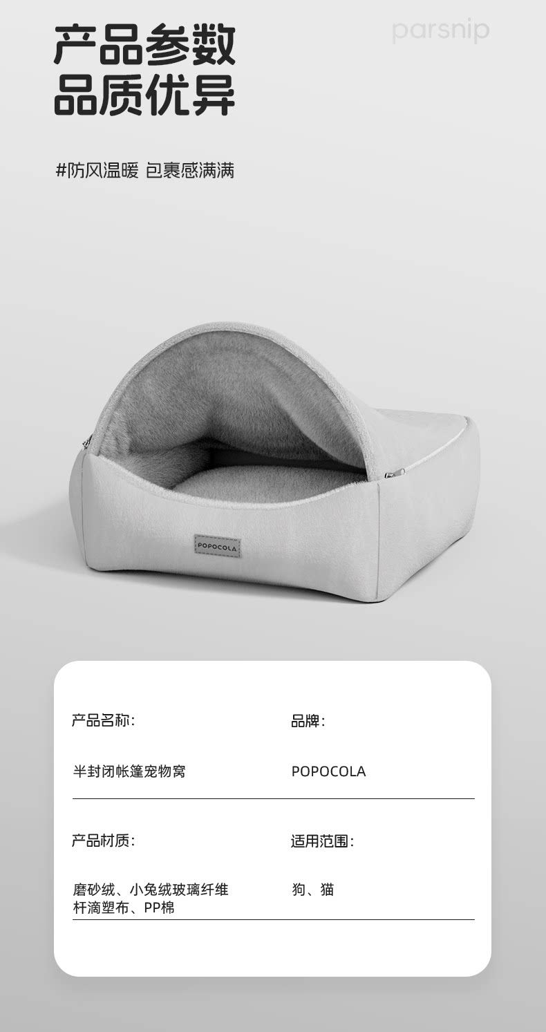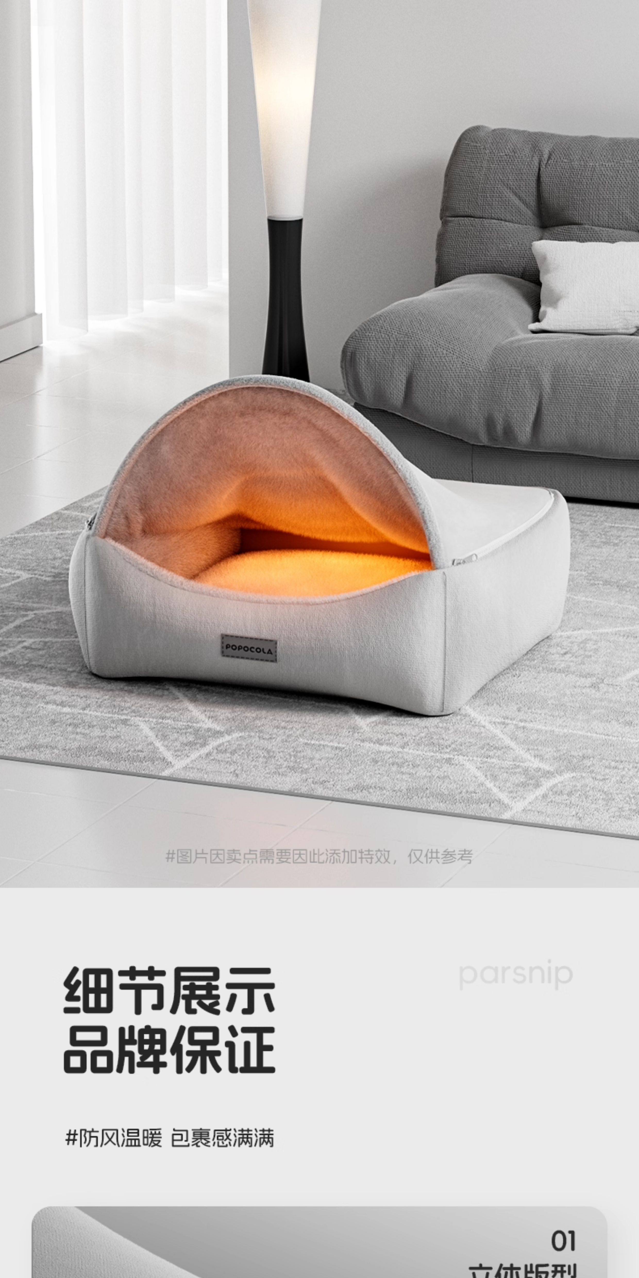 【POPO 官方正品】冬季加厚半封閉貝殼型狗窩|中大型犬專用保暖安全感睡窩(全件可拆卸洗、仿生包裹設計、防風蓄熱貓狗通用、POPO 質感冬用避風港,大型犬深層睡眠專用床)