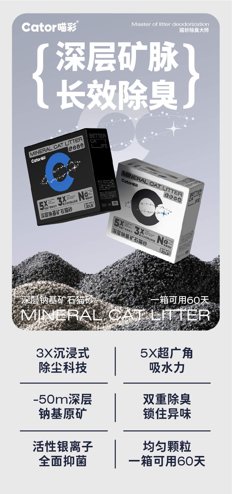 【Cator 小卡】深層鈉基礦砂 20磅 (9.07kg)|天然膨潤土貓砂,極致低粉塵強效除臭,秒速結團不黏底,天然抗菌礦物砂
