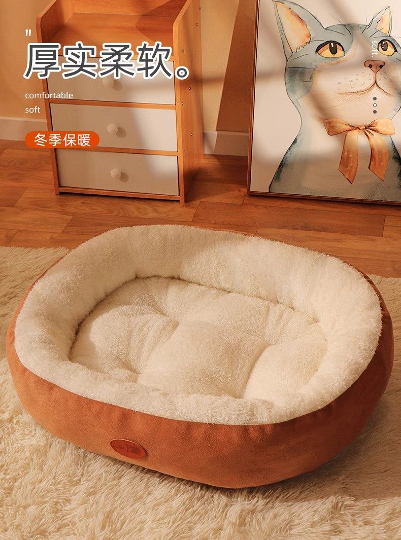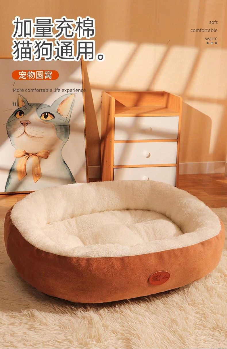 Deep sleep oval nest coffee upgraded tall and thickened four seasons universal / M medium size 60 48 17cm recommended for pets under 20 catties 5832658330453