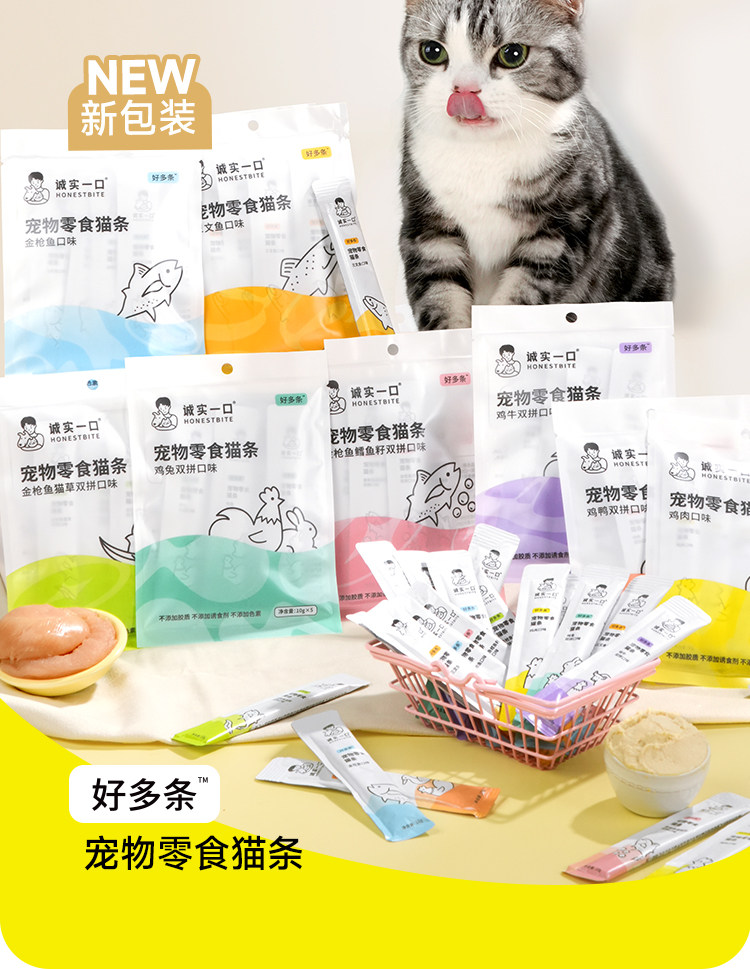 【誠實一口】全價主食貓條|0 膠 0 誘食劑 0 澱粉純淨配方,幼貓成貓補水營養濕食,高鮮肉含量非零食級舔舔樂