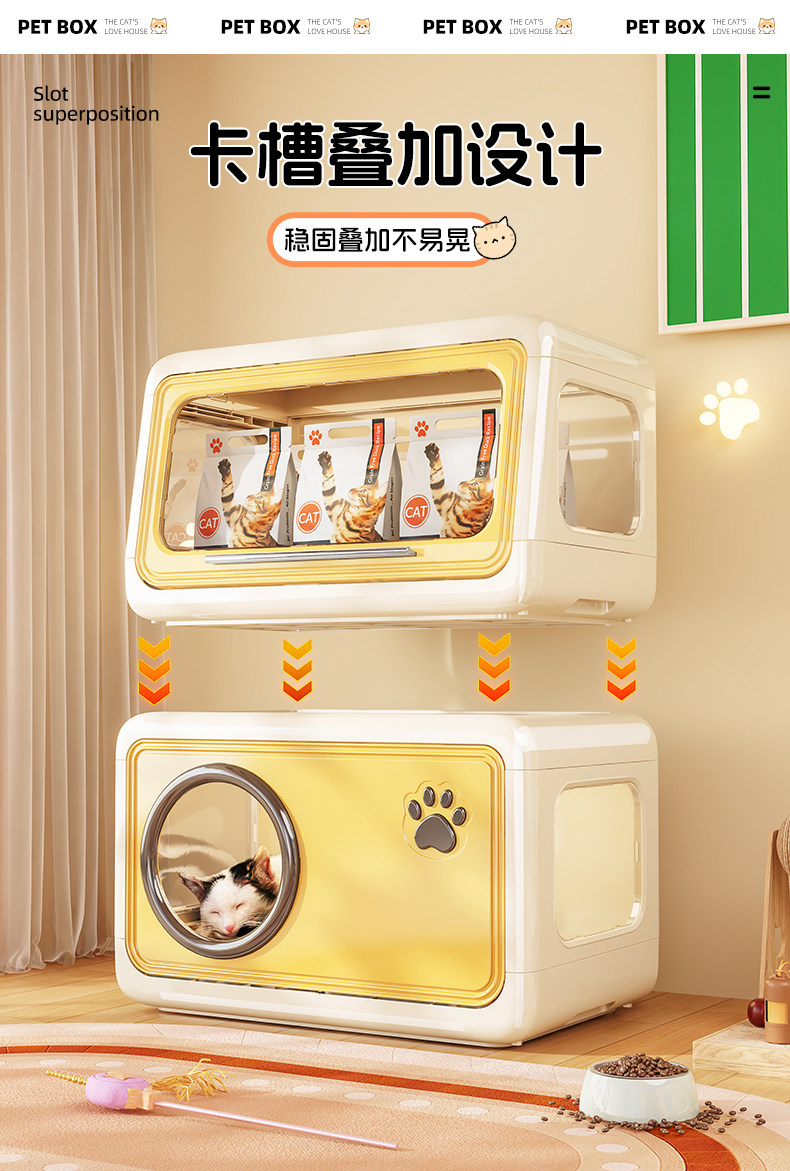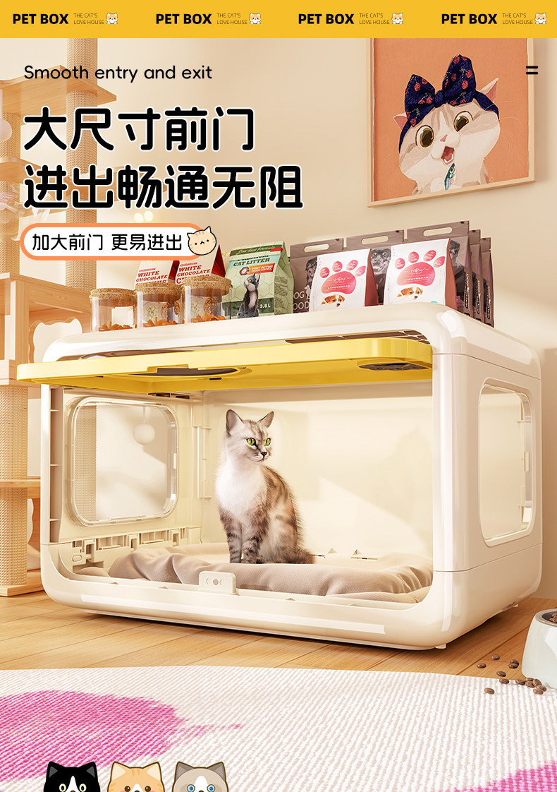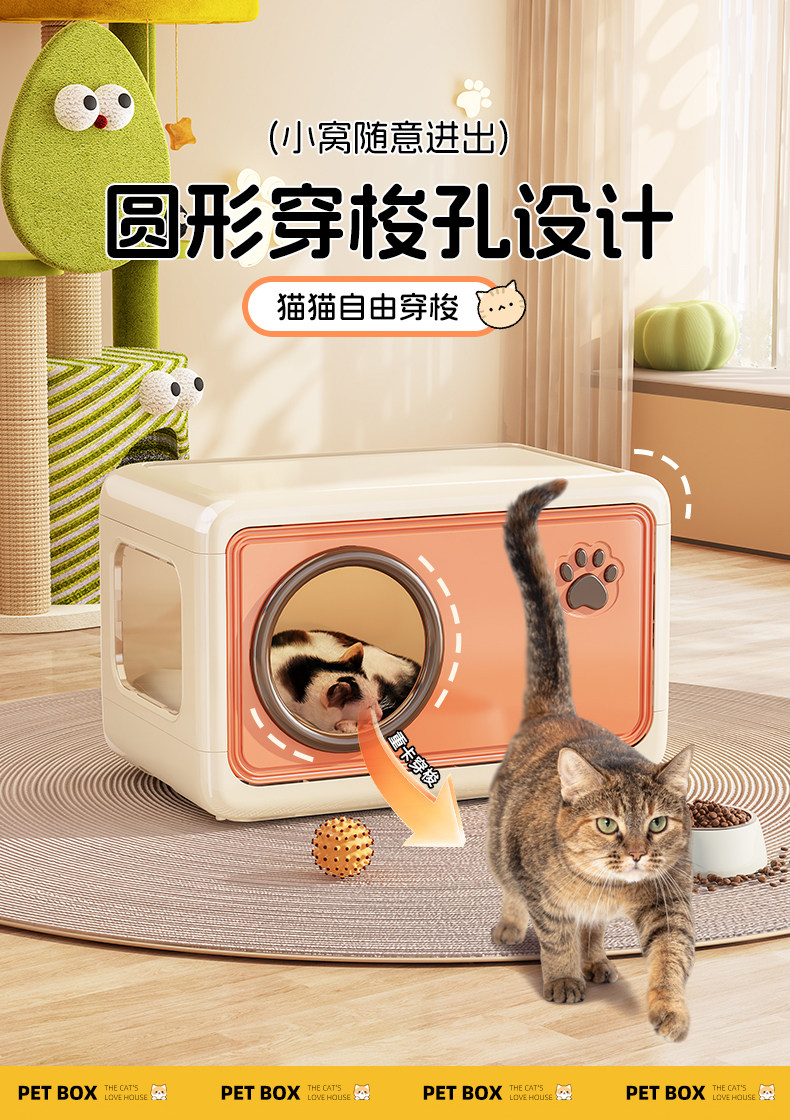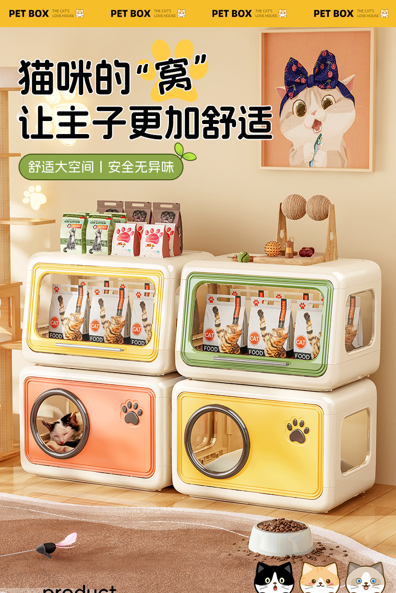 超大空間室內貓櫃|自帶隱藏砂盆一體化設計,幼貓成貓專屬加厚貓別墅,多功能家用大型貓房