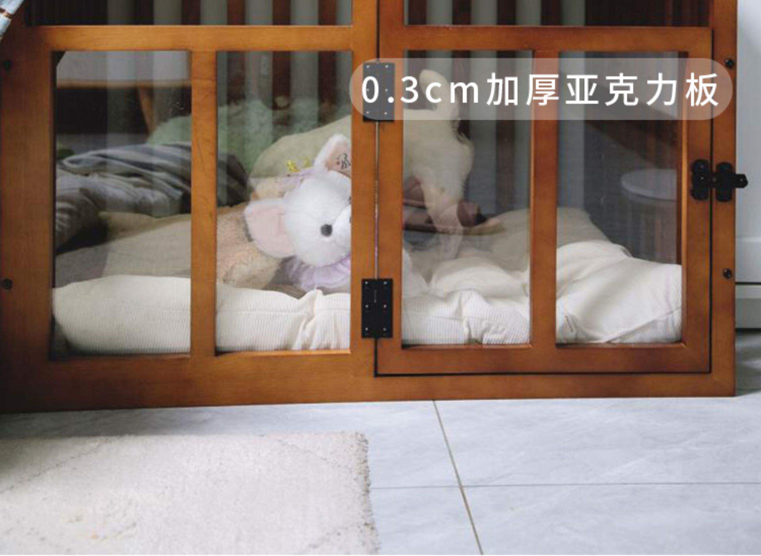 Walnut color double door bottom plate with sleeping pad / L size engraved name suitable for dogs under 48 pounds 6009907369802