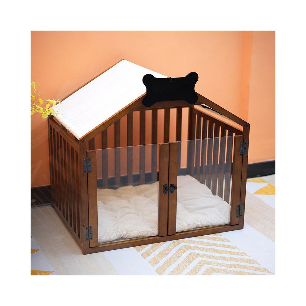 Walnut color double door bottom plate with sleeping pad / L size without engraved name suitable for dogs under 48 pounds 6009907369801