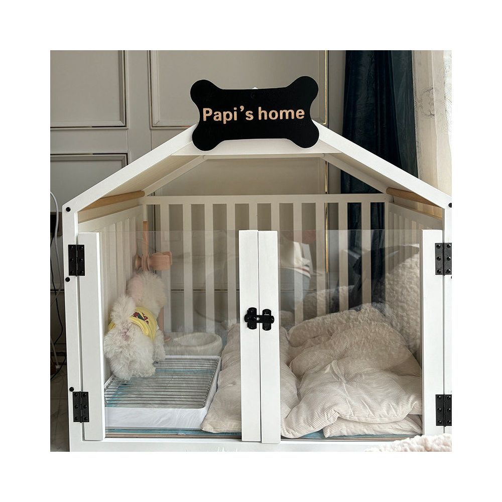 Classic white single door bottom panel with sleeping pad / M sized engraved name suitable for dogs under 25 pounds 6009907369788