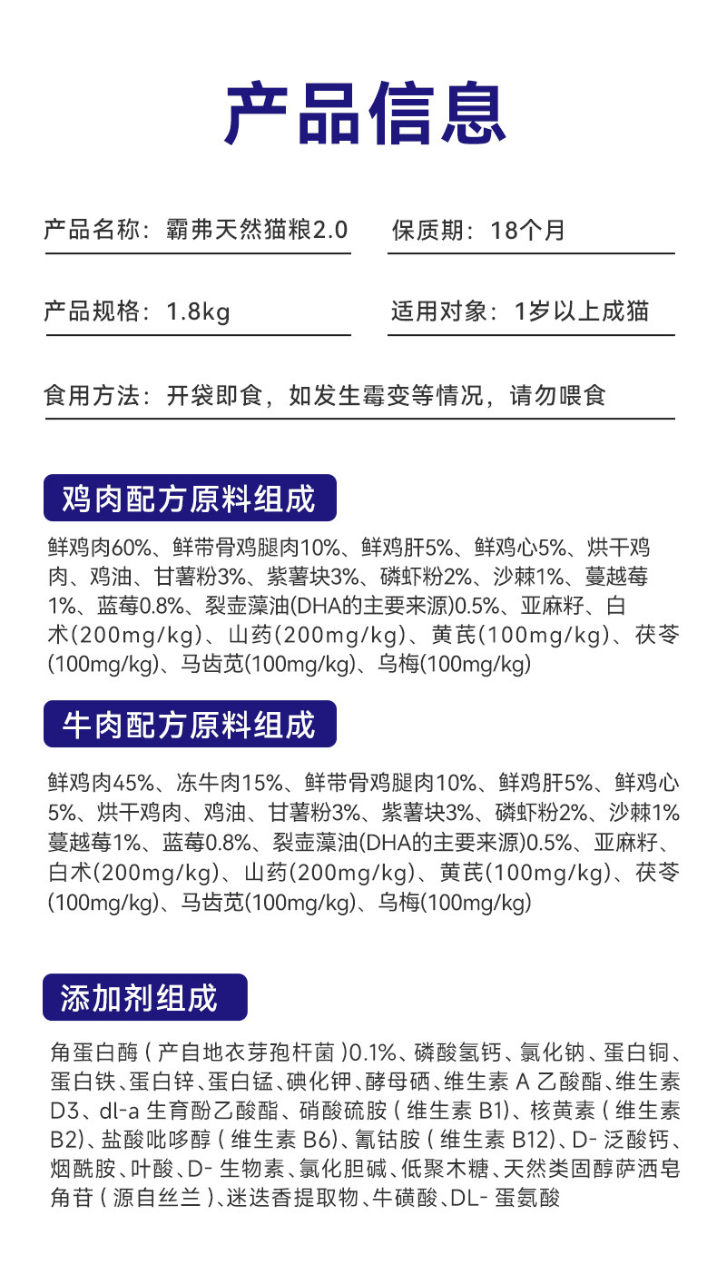 Adult cat chicken recipe / 1 8kg6137187431417 $361.42/件 |