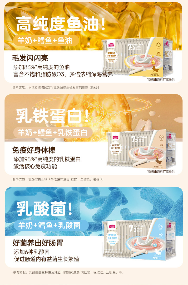Freeze dried goat milk sticks are a great value stock including chicken fish oil and cat grass / 1 box5857556500183 $425.78/件 |
