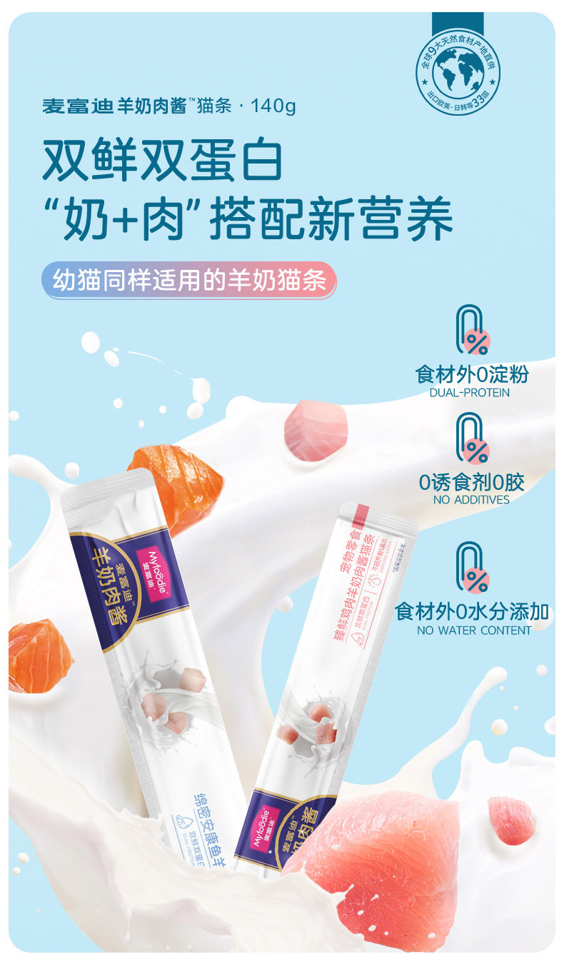 【麥富迪 Maifudi】羊奶鮮肉貓肉泥|無誘食劑營養貓條,幼貓補鈣濕糧、騙水獎勵必備(罐裝/袋裝)