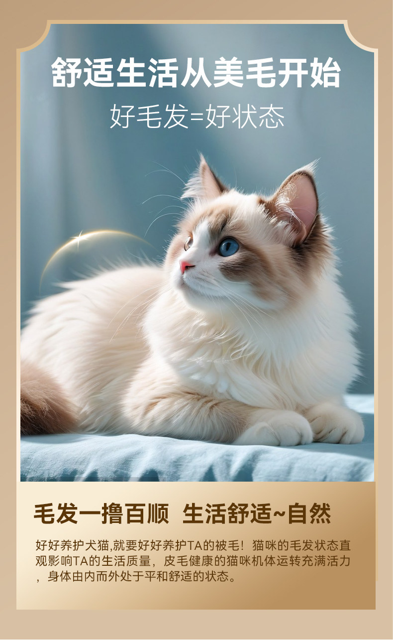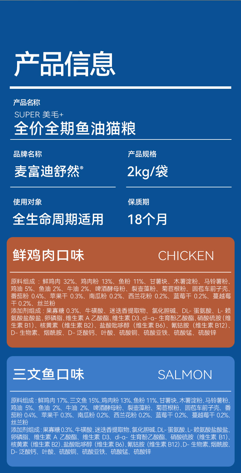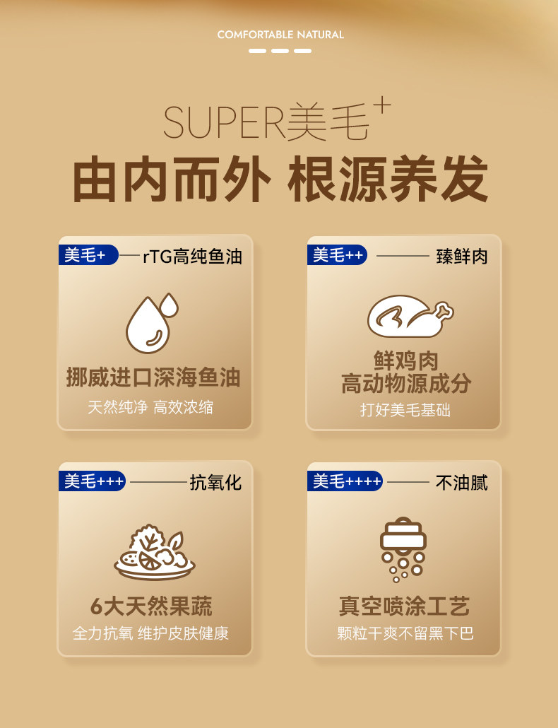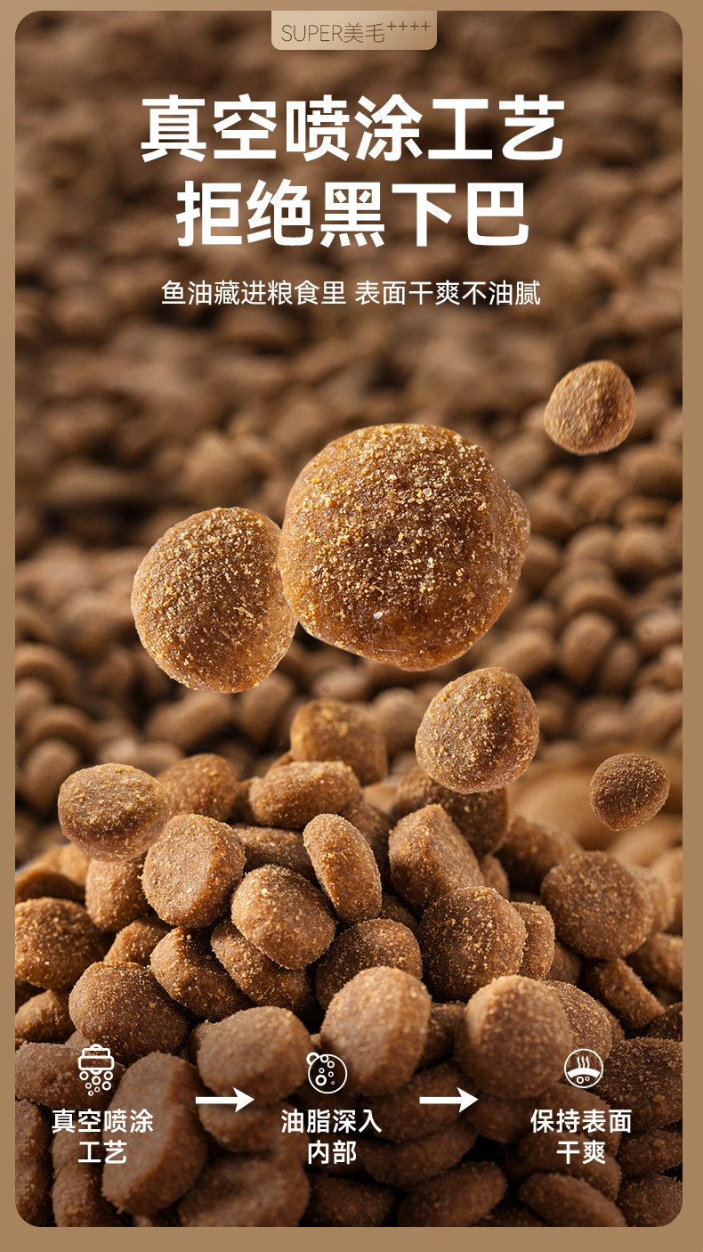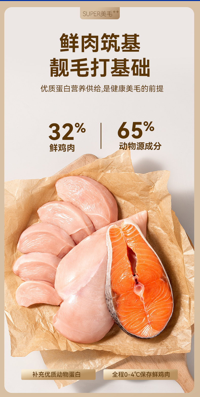 Fresh chicken meat flavor, imported from Norway, fish oil, salmon flavor, six natural fruit and vegetable mixed flavors, fresh meat as the first ingredient, efficient and beautiful hair dual beauty hair combination