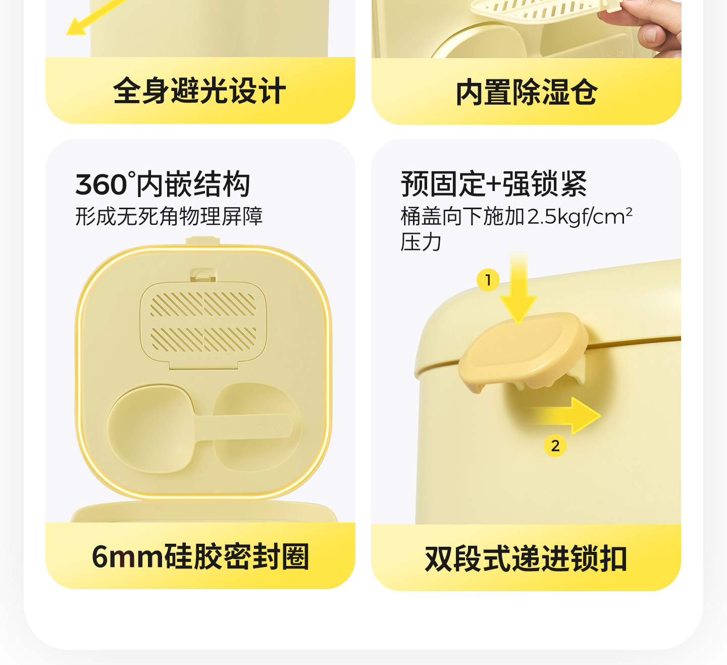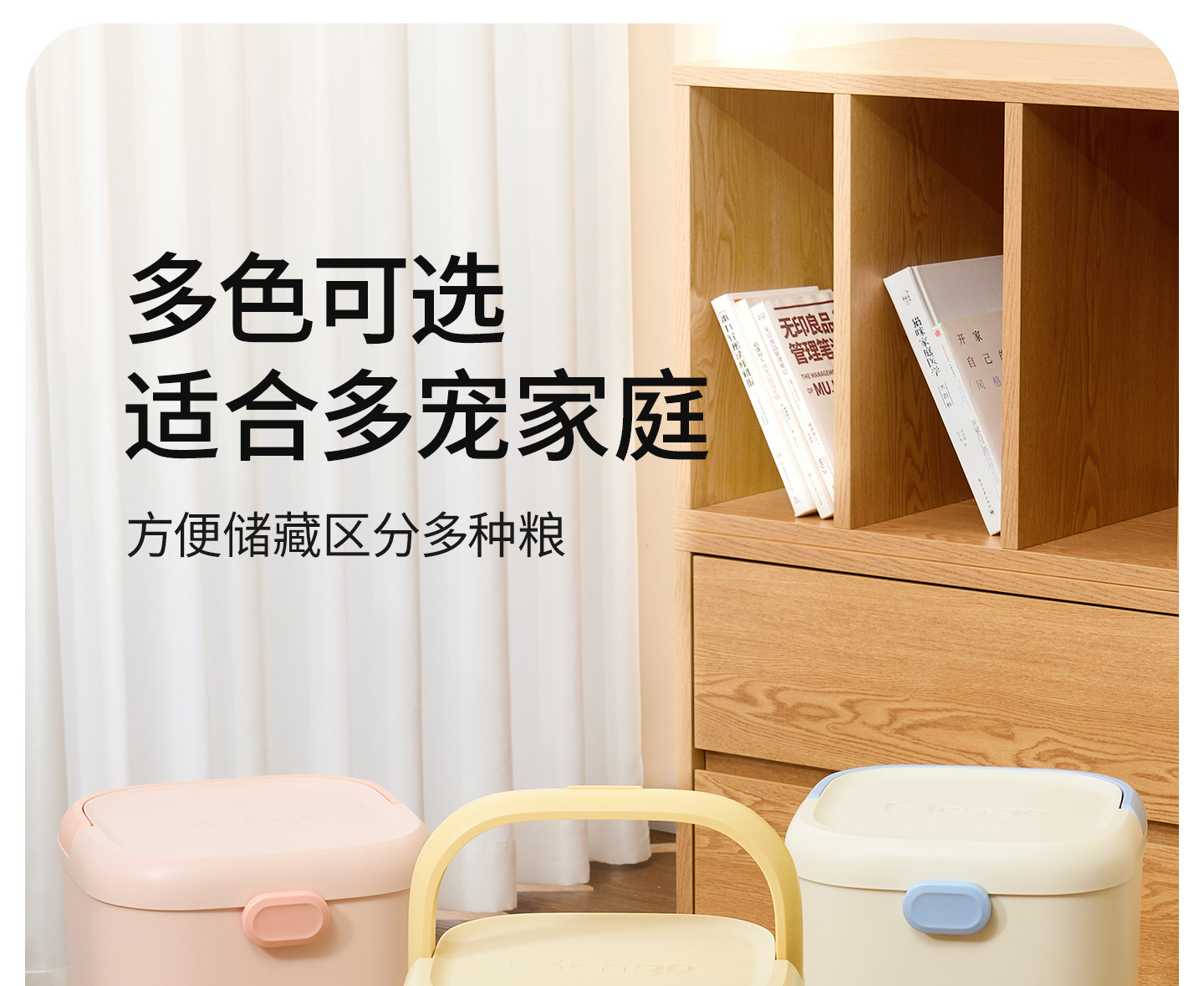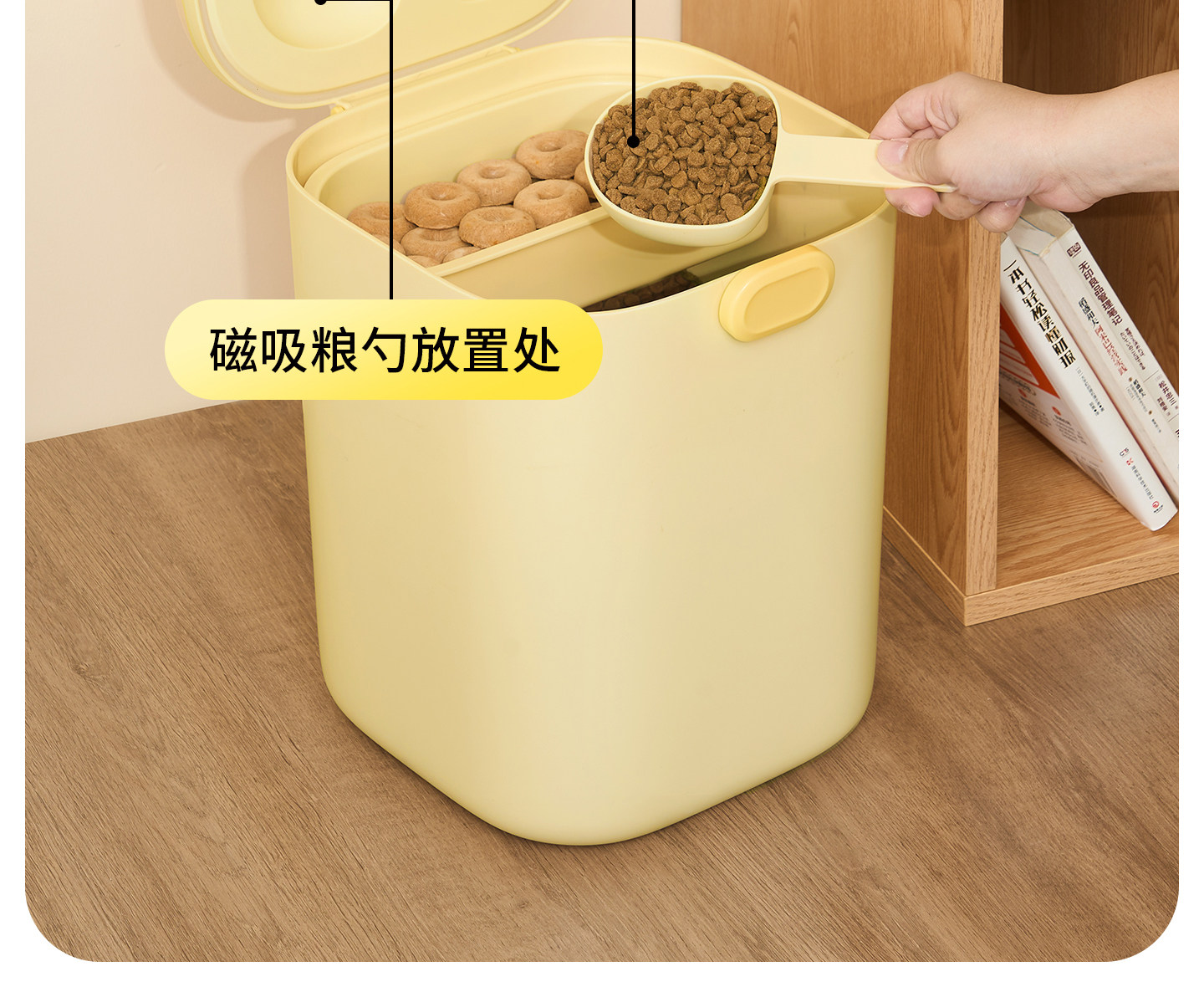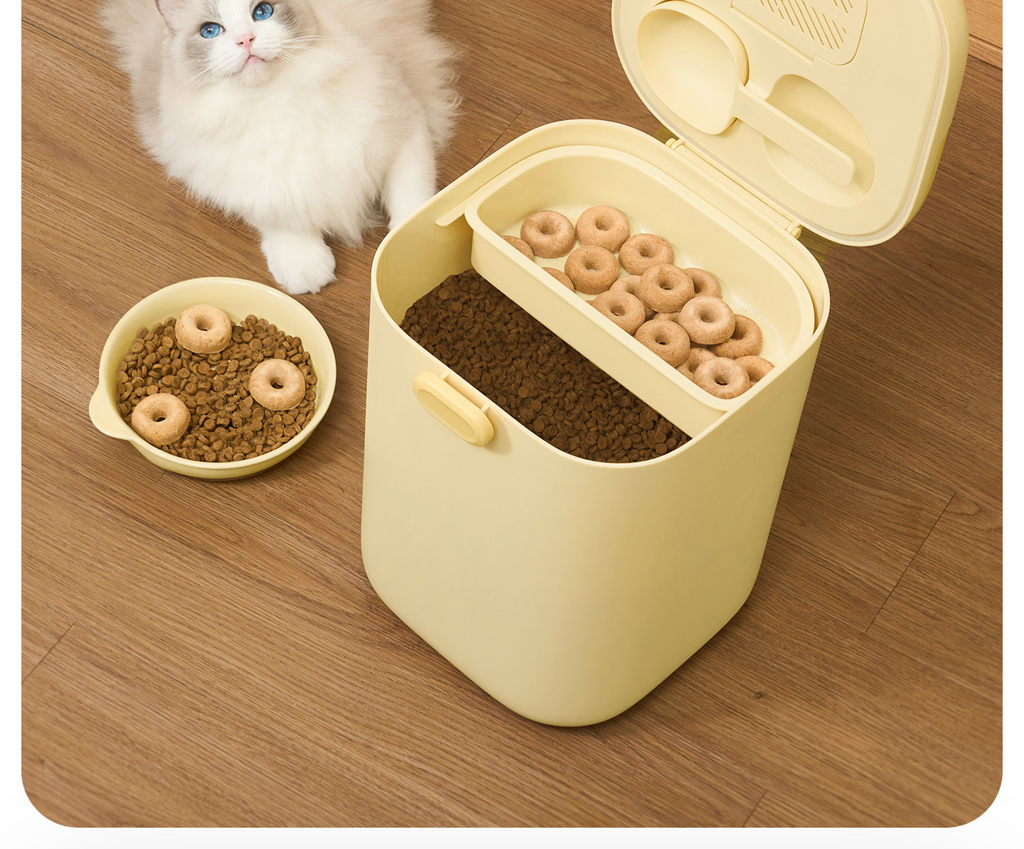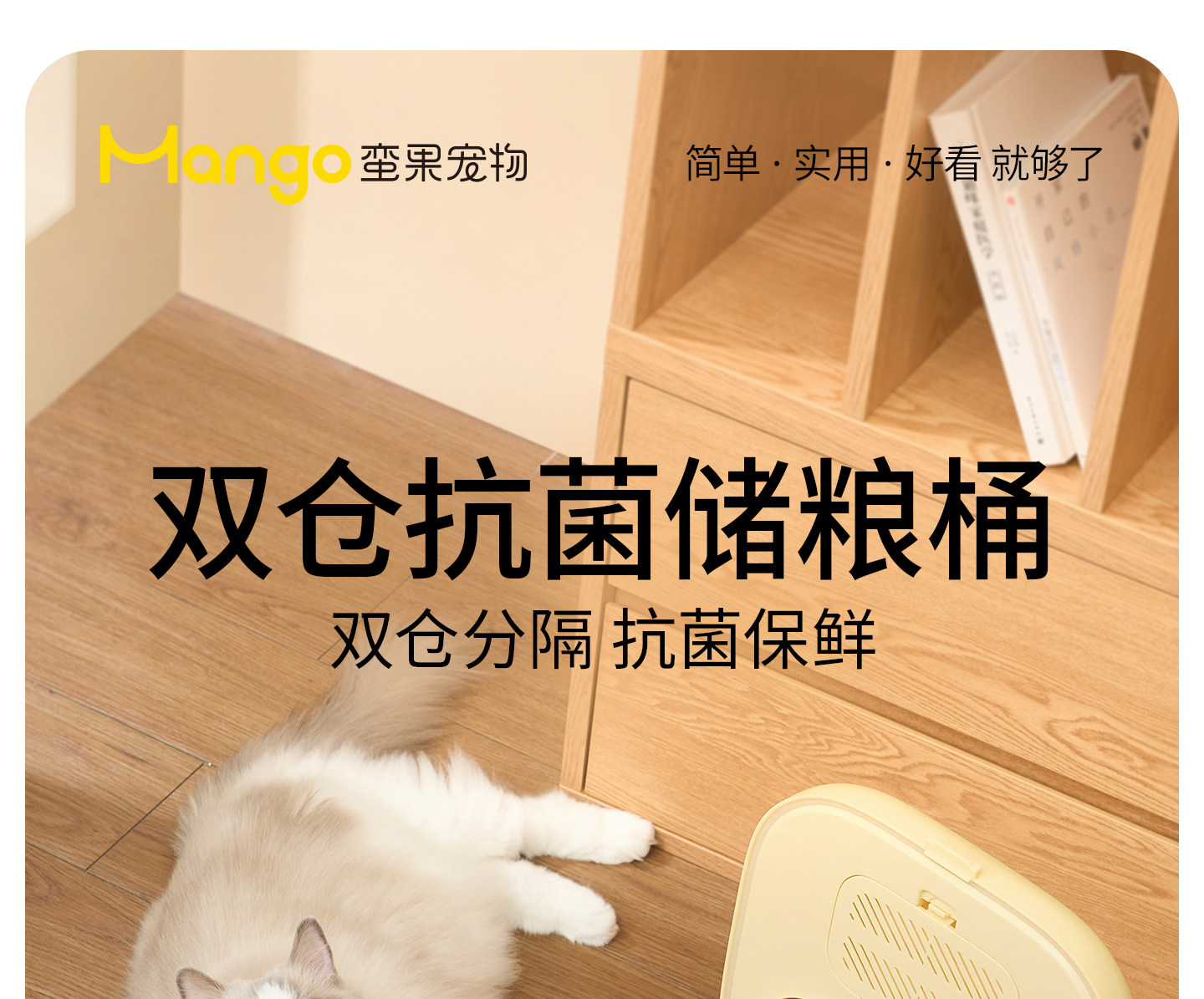 【Mango Fruit 芒果】寵物抗菌密封儲糧桶|雙桶大容量收納桶,貓糧狗糧防潮防霉密封罐,乾糧分區儲存箱
