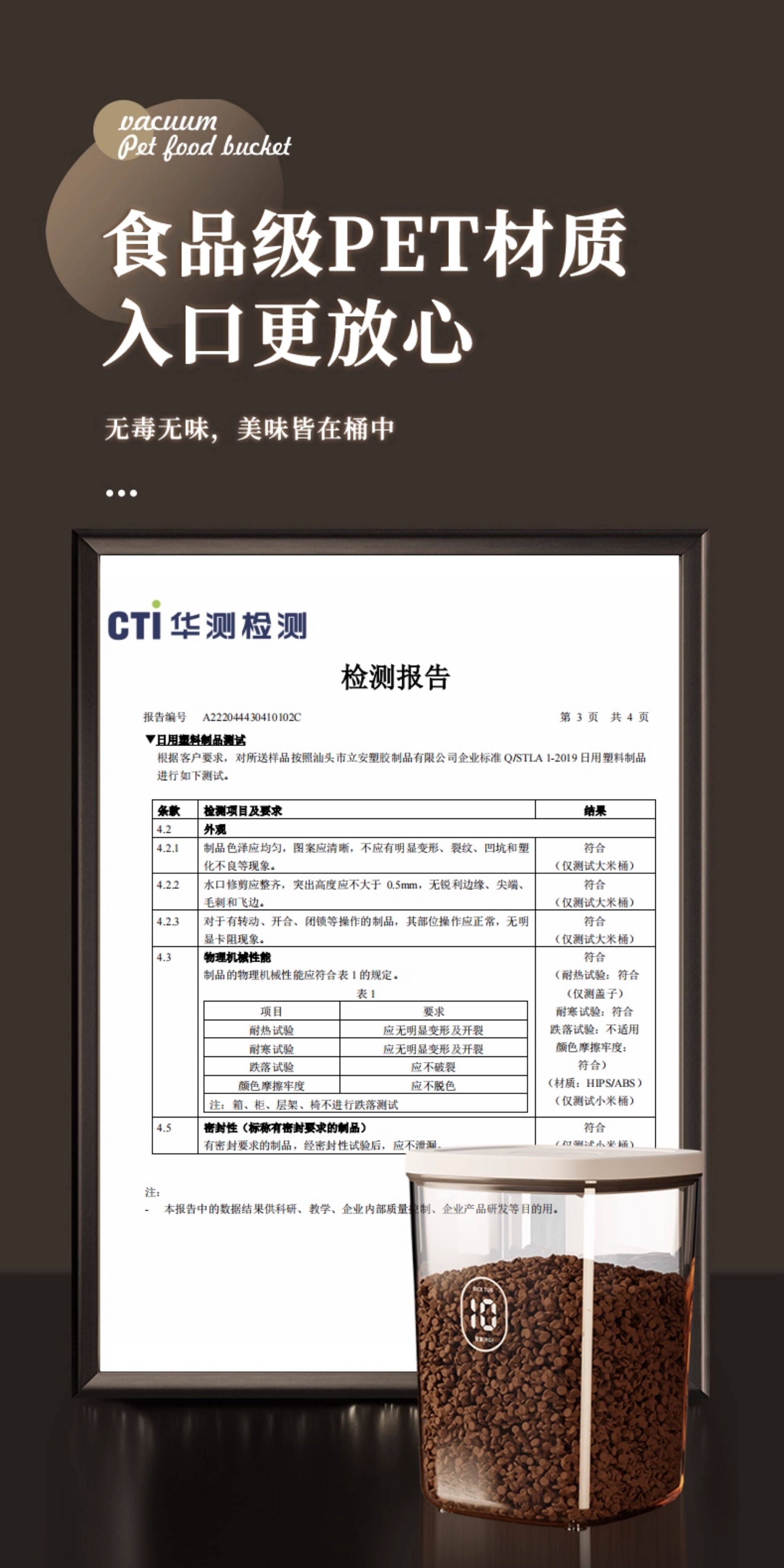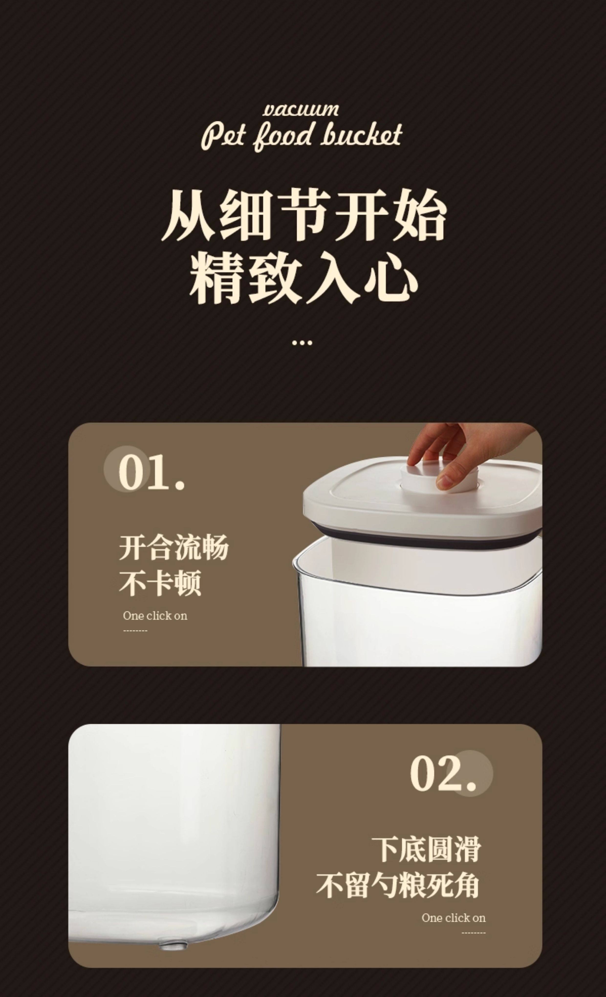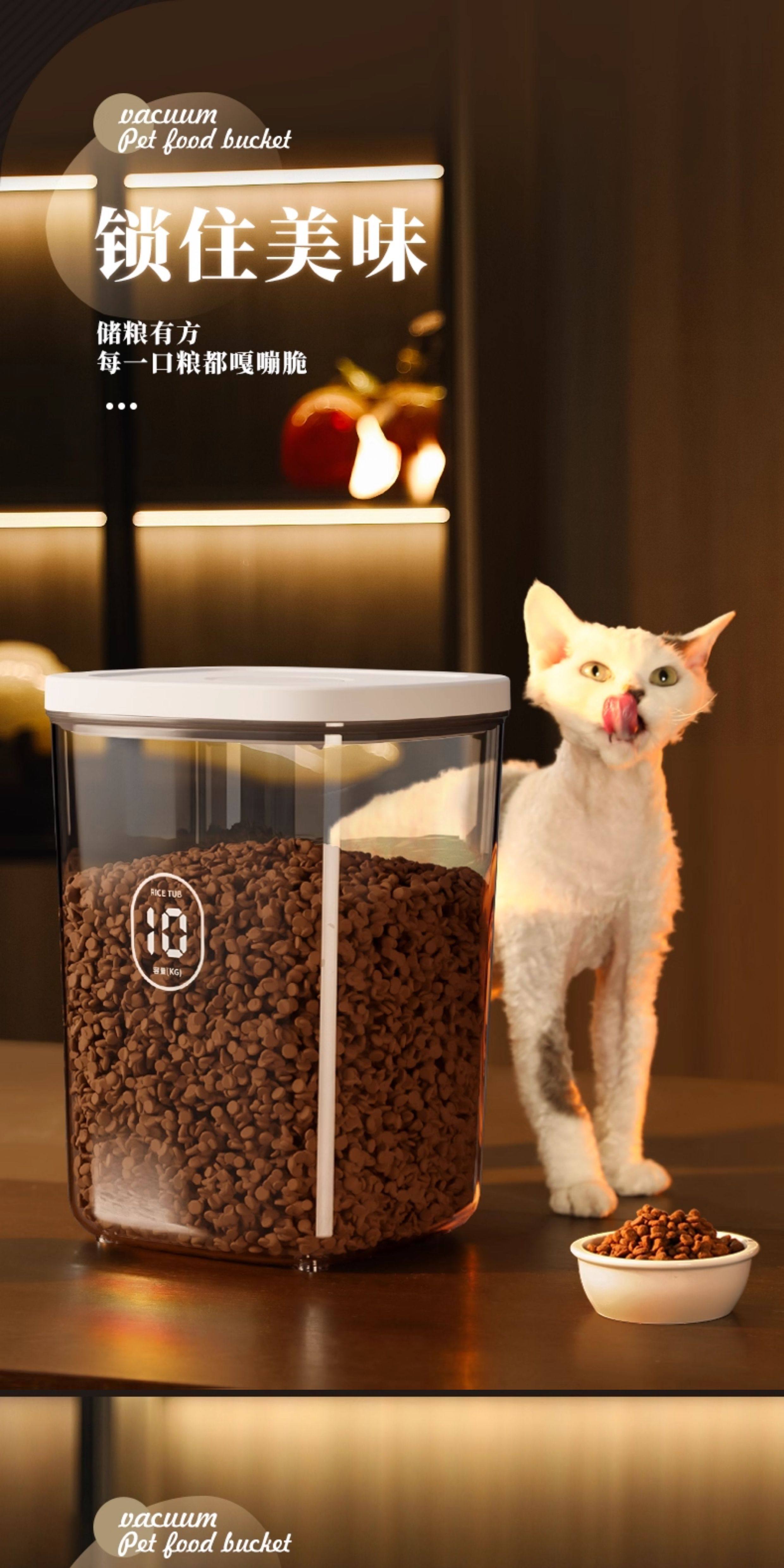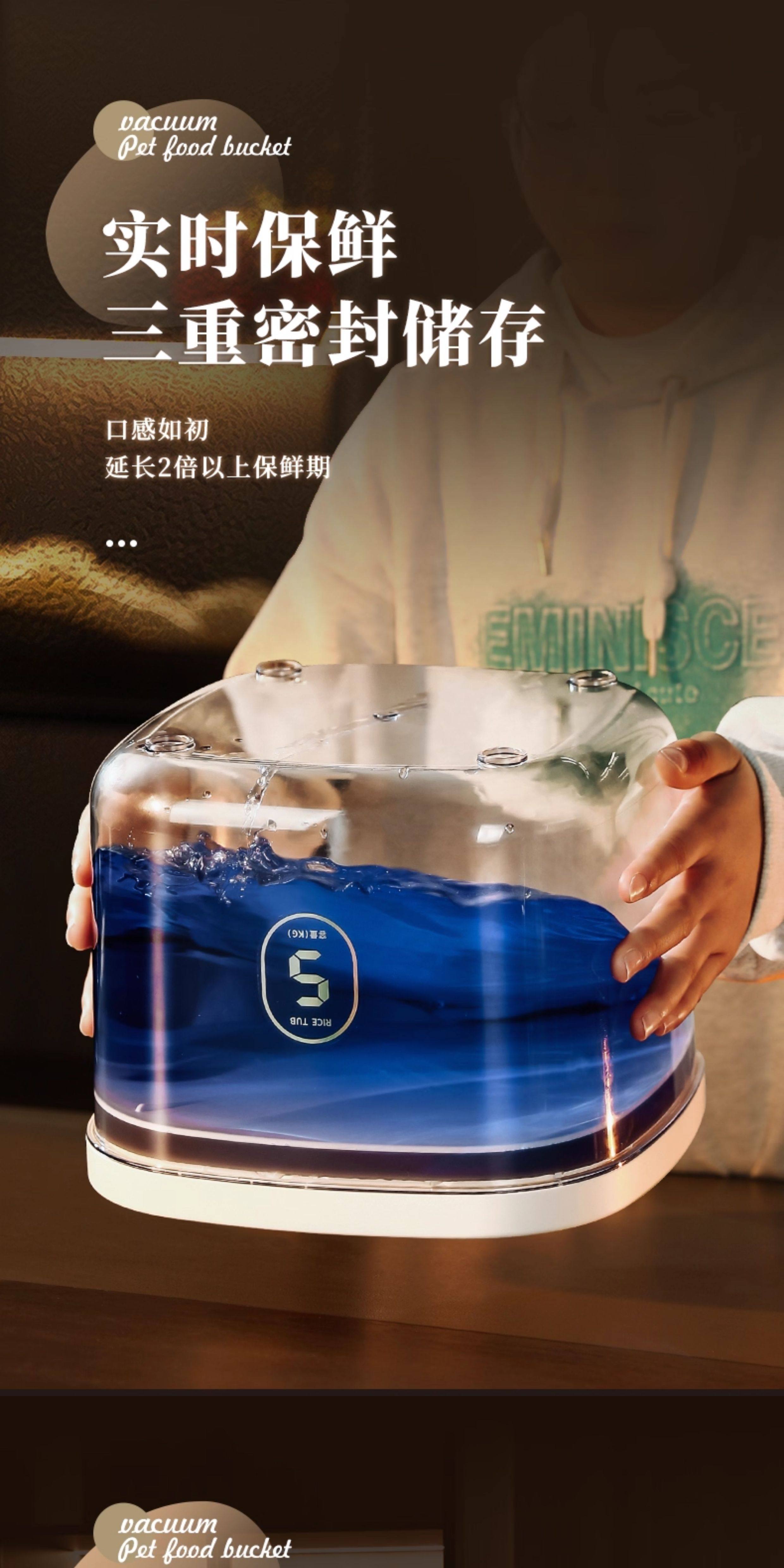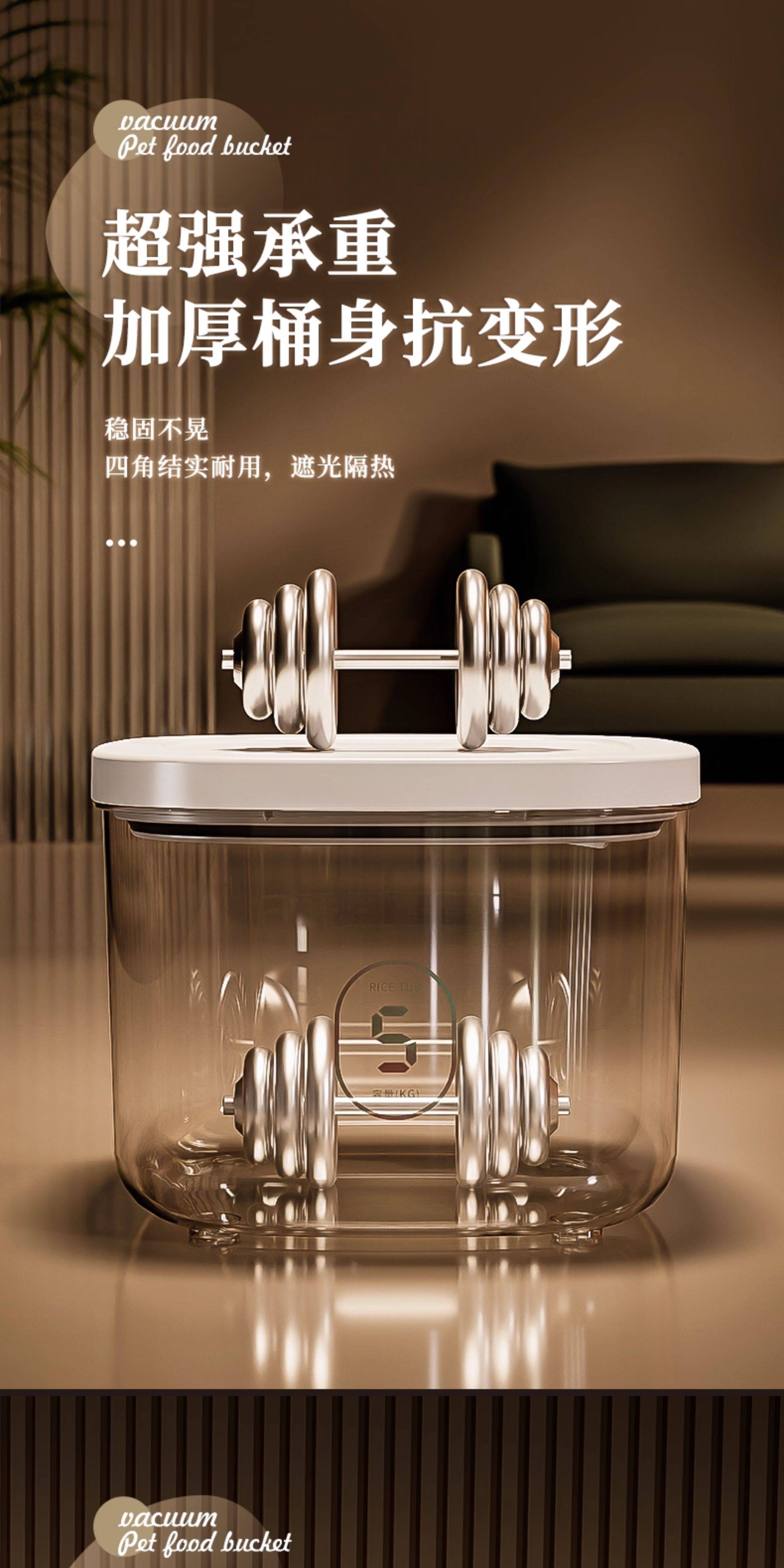 Medium negative pressure sealed storage bucket for cat and dog food weighing about 6 pounds, large negative pressure sealed storage bucket for cat and dog food weighing about 12 pounds, medium negative pressure sealed moisture-proof bucket, 2 boxes of diatomaceous earth desiccant, large negative pressure sealed moisture-proof bucket, 2 boxes of diatomaceous earth desiccant, large negative pressure sealed moisture-proof bucket, and 2 packs of diatomaceous earth desiccant. Electric vacuum sealed medium (cat and dog food weighing about 6 pounds), electric vacuum sealed large (cat and dog food weighing about 12 pounds), medium upgraded brown light proof version storage bucket (cat and dog food weighing about 6 pounds), large upgraded brown light proof version storage bucket (cat and dog food weighing about 12 pounds), large pressure multiple sealing - cat and dog food weighing about 6-8 pounds