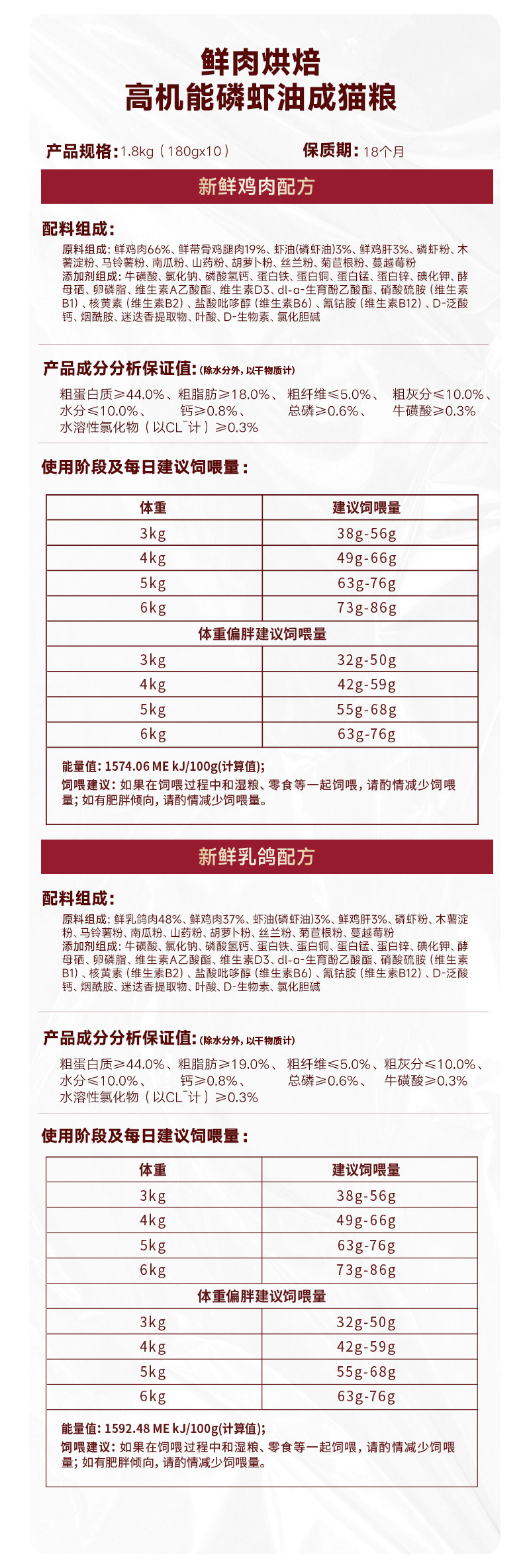 Krill oil chicken recipe for cats / 1 8kg 180g x 10 small bags5979696657168 $540.80/件 |
