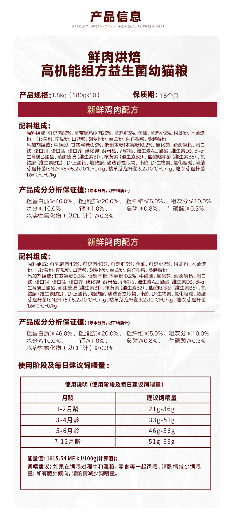 Probiotic roast squab formula kitten / 1 8kg 180g x 10 small bags5979696657184