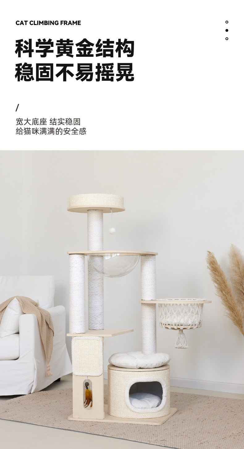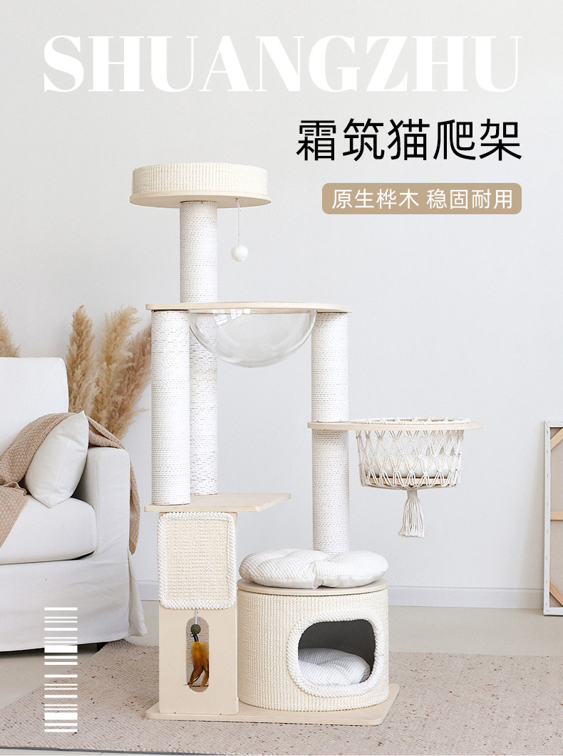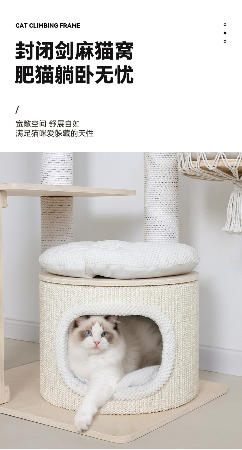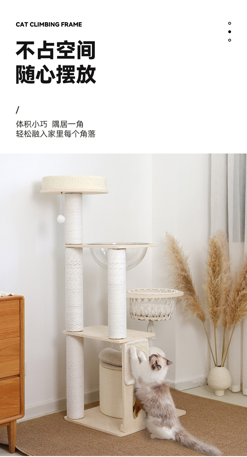 【九寵 Nine Pet】實木一體式貓跳台|多層空間開發,小戶型專屬不佔空間貓樹,加固型耐磨劍麻貓抓柱,租屋族首選簡約小型貓爬架