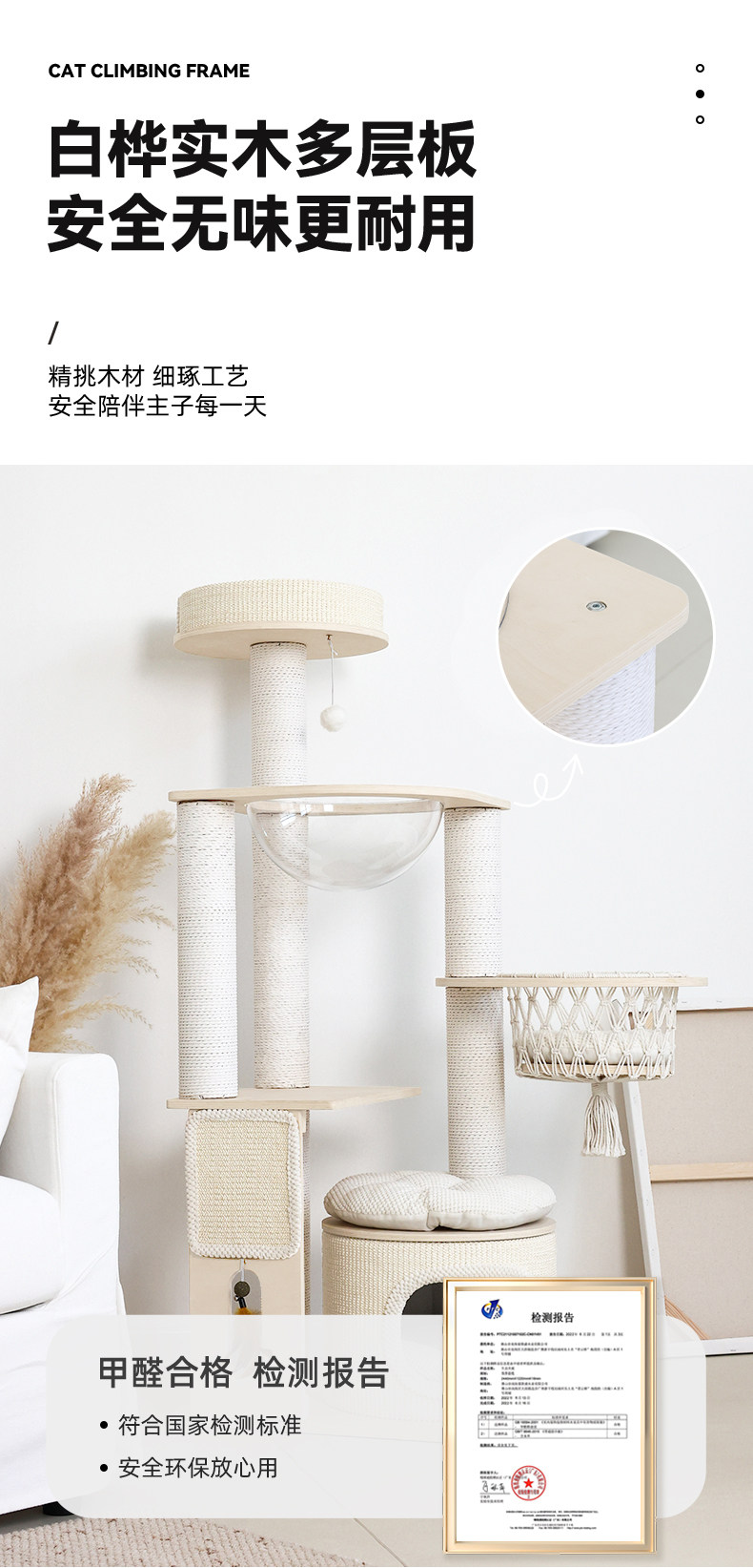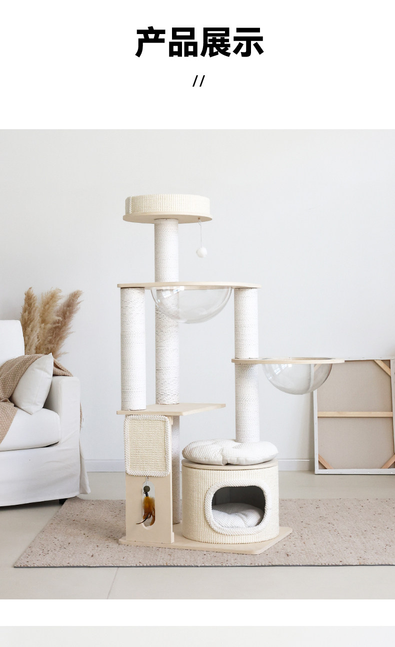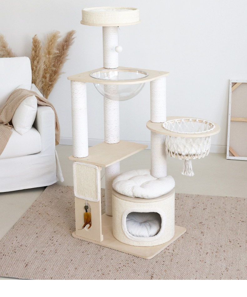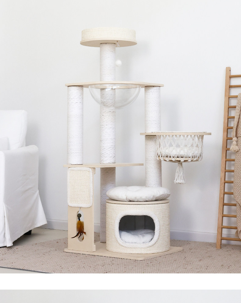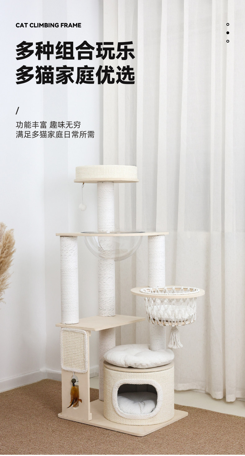 【九寵 Nine Pet】實木一體式貓跳台|多層空間開發,小戶型專屬不佔空間貓樹,加固型耐磨劍麻貓抓柱,租屋族首選簡約小型貓爬架
