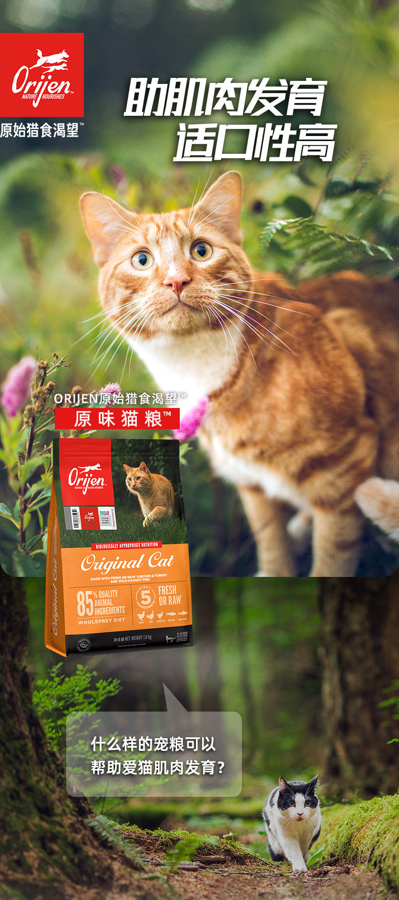 【Orijen 渴望】原始獵食雞肉貓糧 5.4kg|美版原裝進口(官方旗艦店正品、85%高肉含量、幼貓成貓全齡通用、無穀高蛋白,頂級鮮肉糧 5.4KG)
