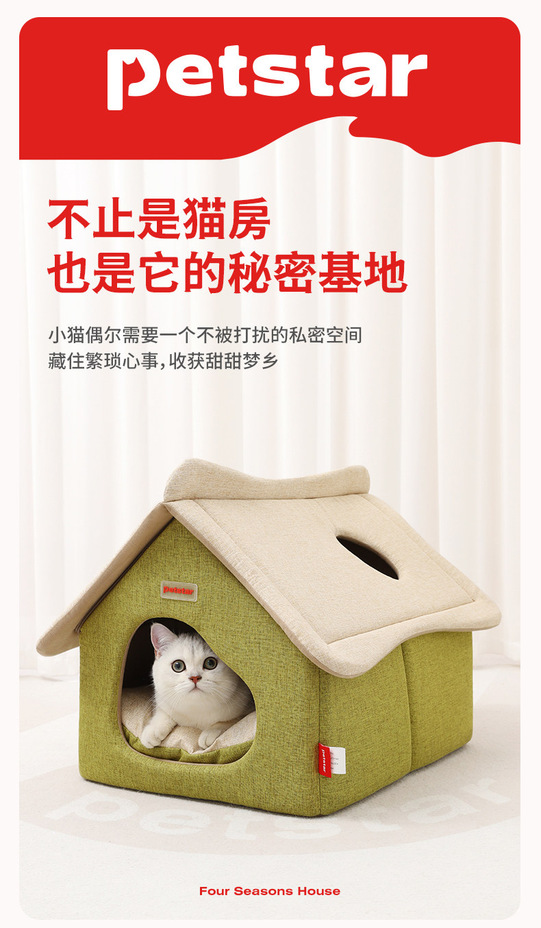 【Petstar】全封閉式寵物貓窩|全拆洗四季通用睡窩,保暖透氣封閉式貓屋,大型貓犬通用舒壓睡眠窩(可機洗清潔方便)
