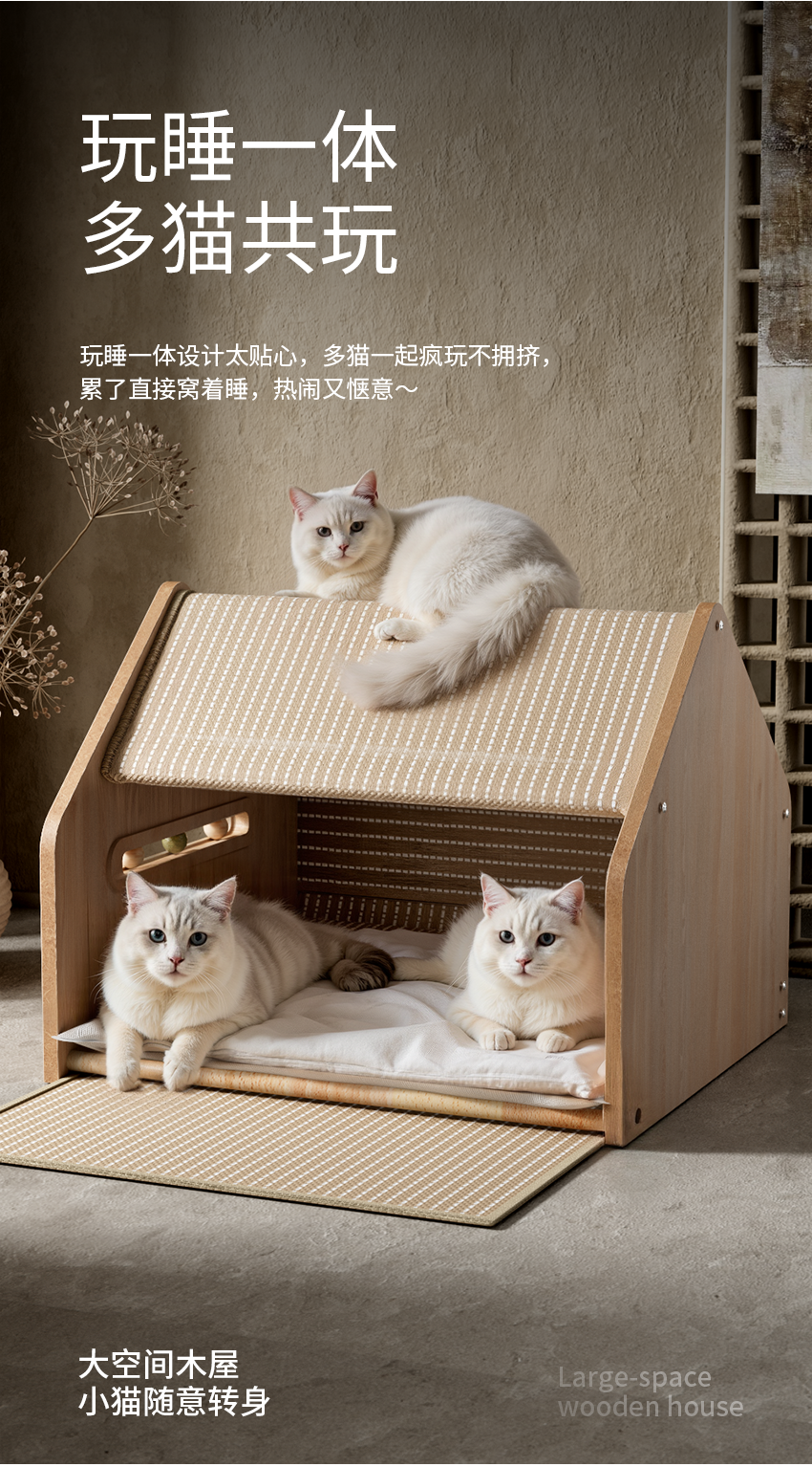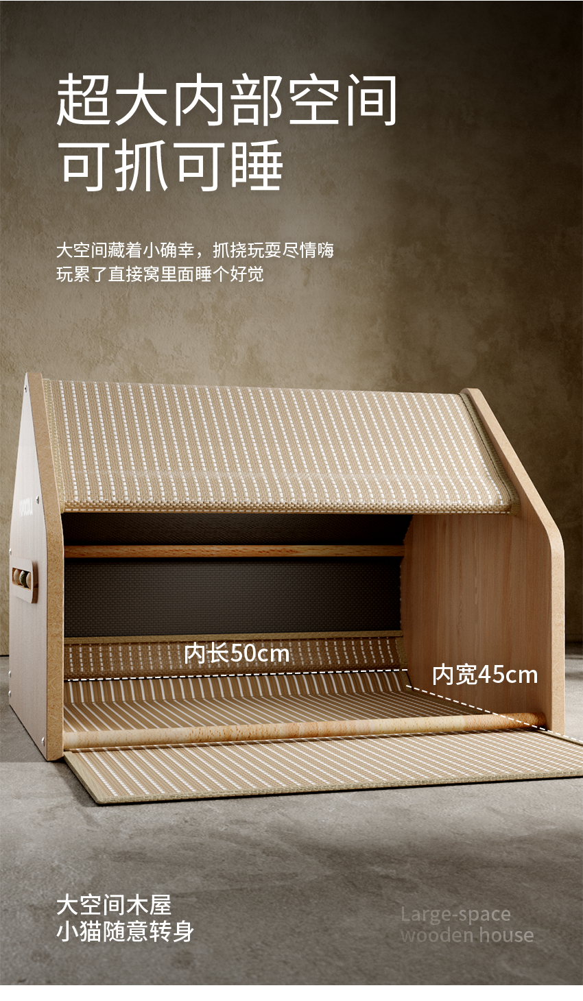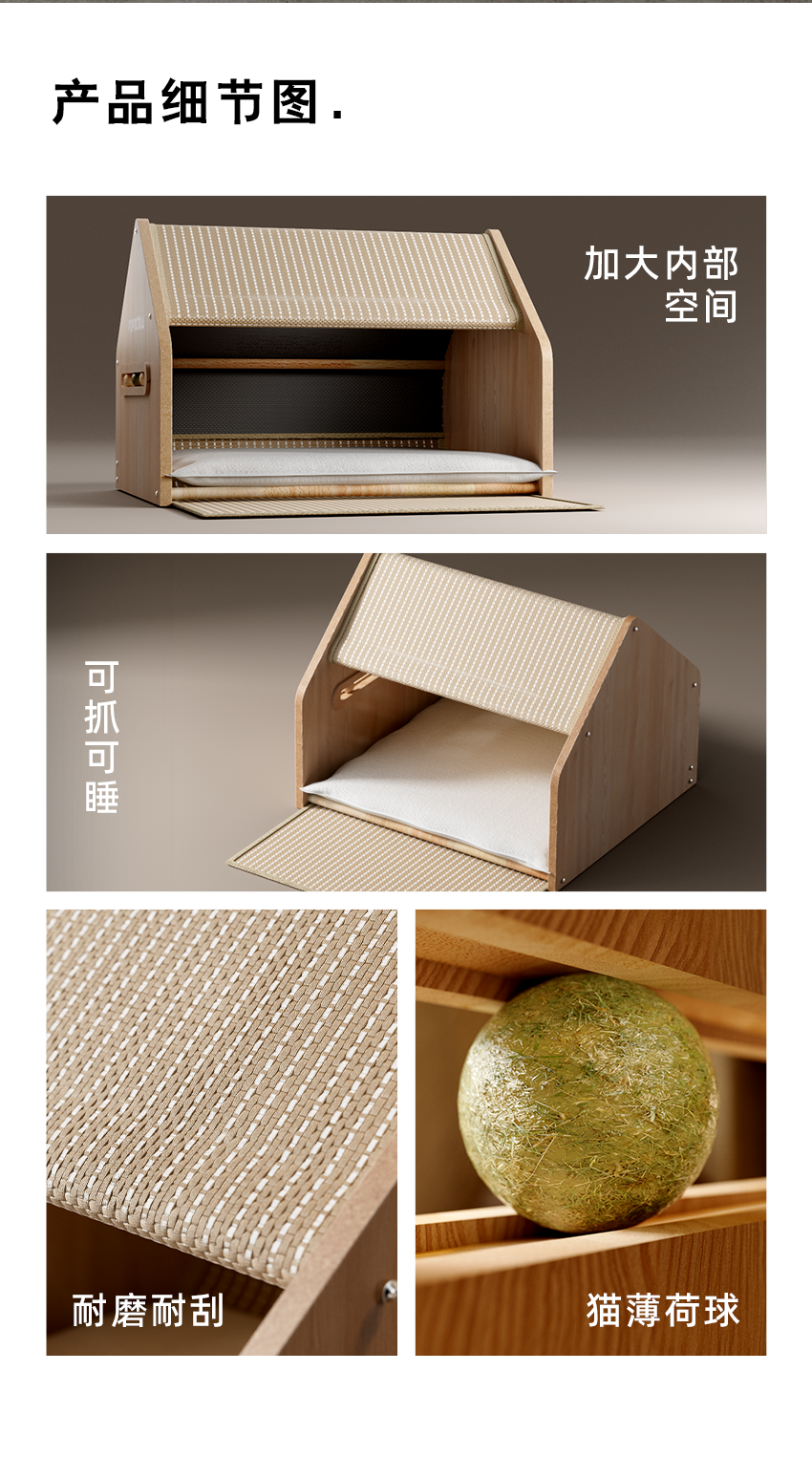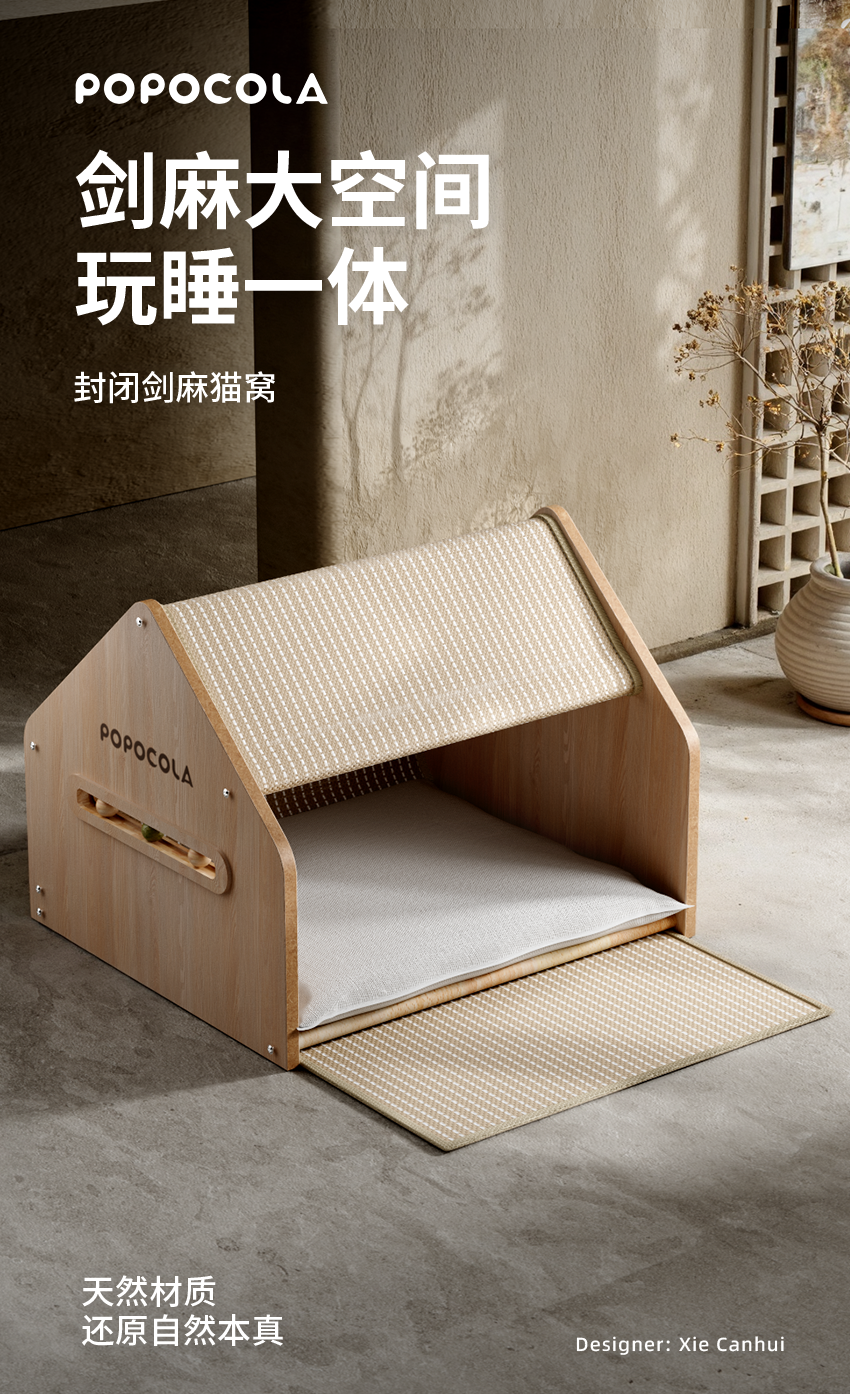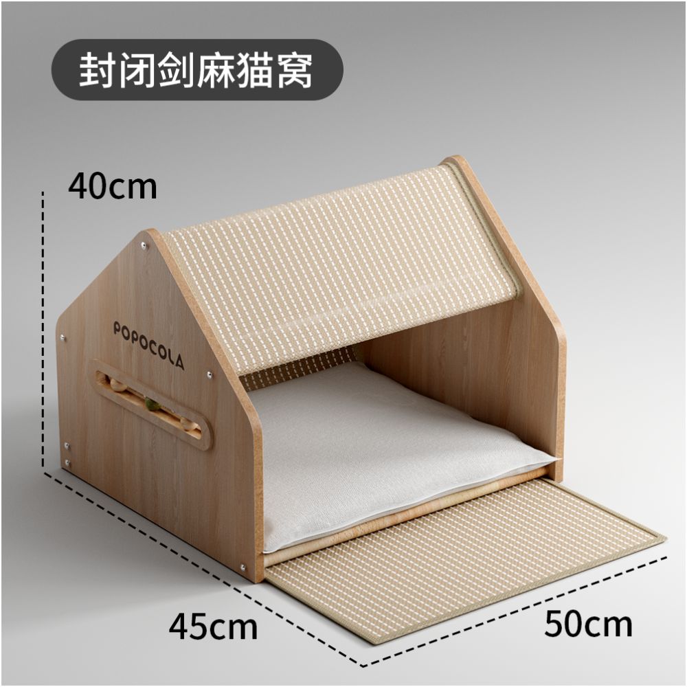 【POPO】封閉式劍麻貓別墅|安全感貓帳篷睡窩,全季通用貓抓板貓屋,加厚耐磨不掉屑,多功能質感寵物窩