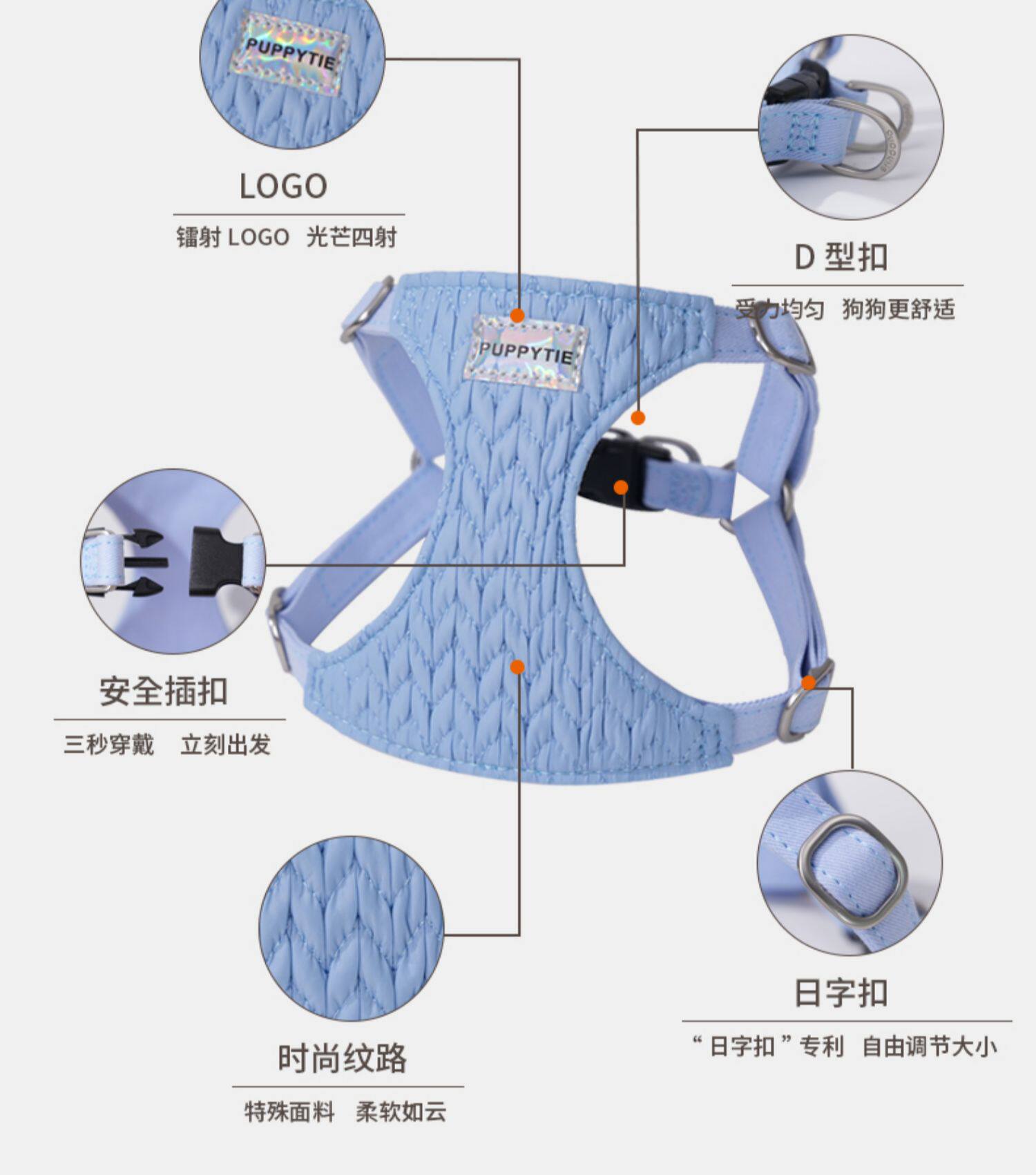 Ocean blue set chest backrest leash / Size xs recommended for 4 10 catties 5681256286830
