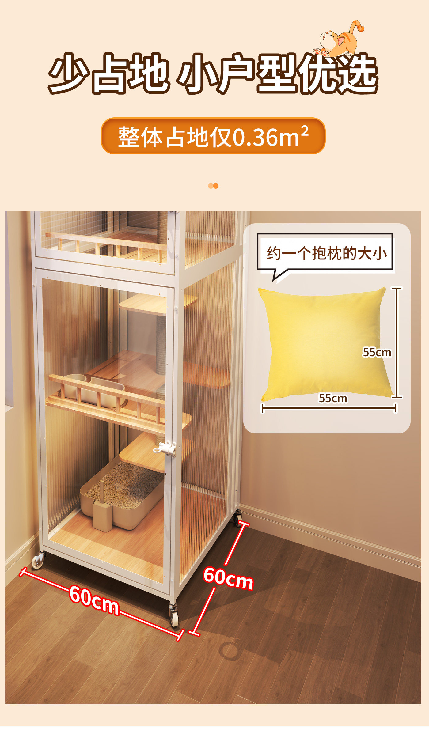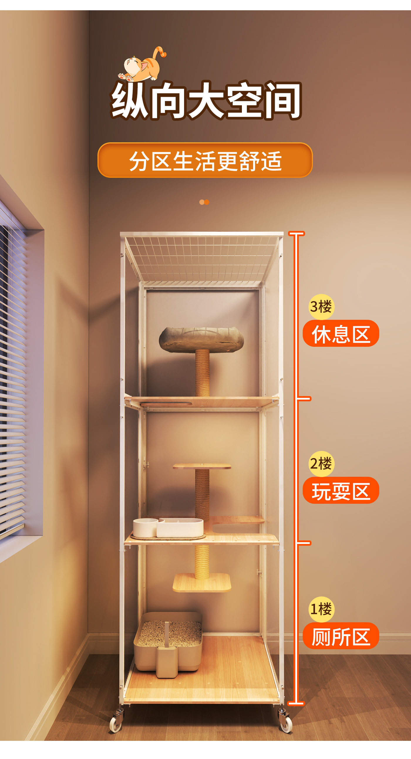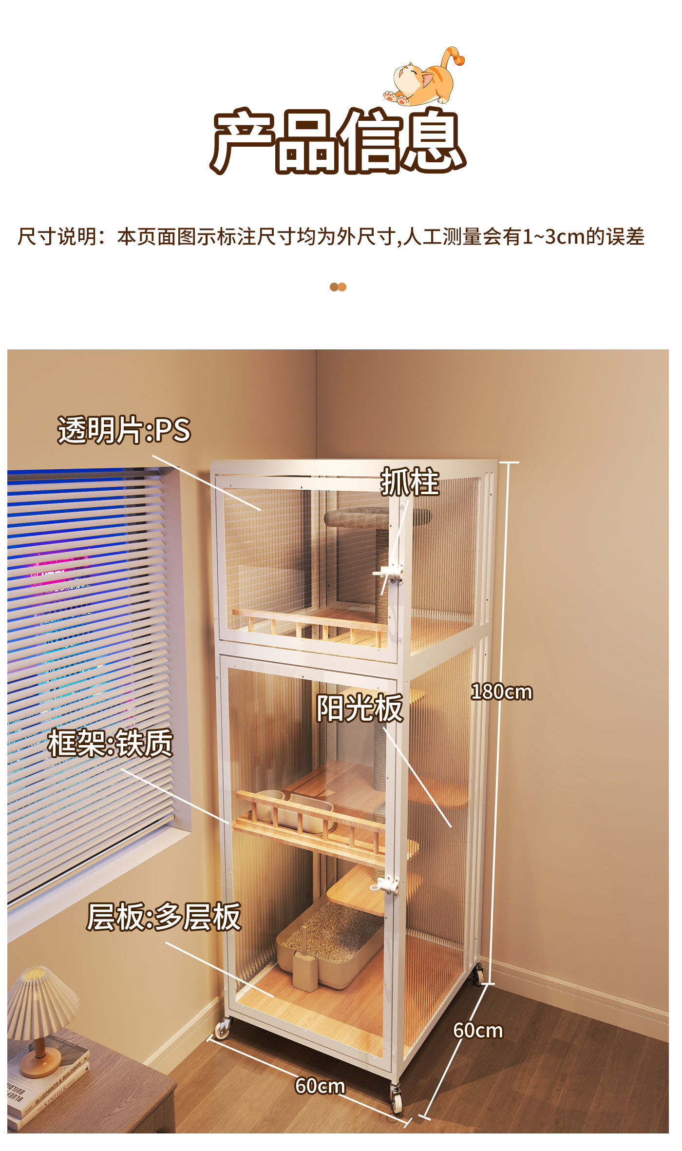 Yunmeng white 60 60 160 non occupied cat villa / Naked cage cat litter box 6157668467792