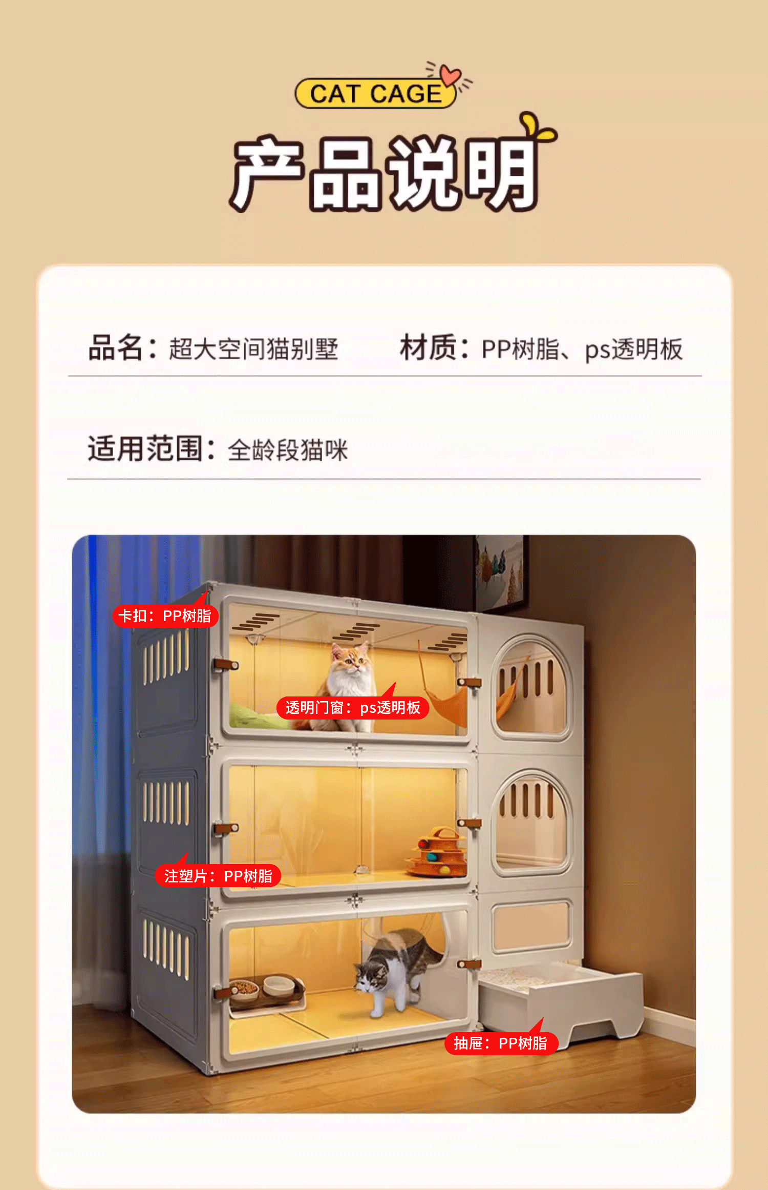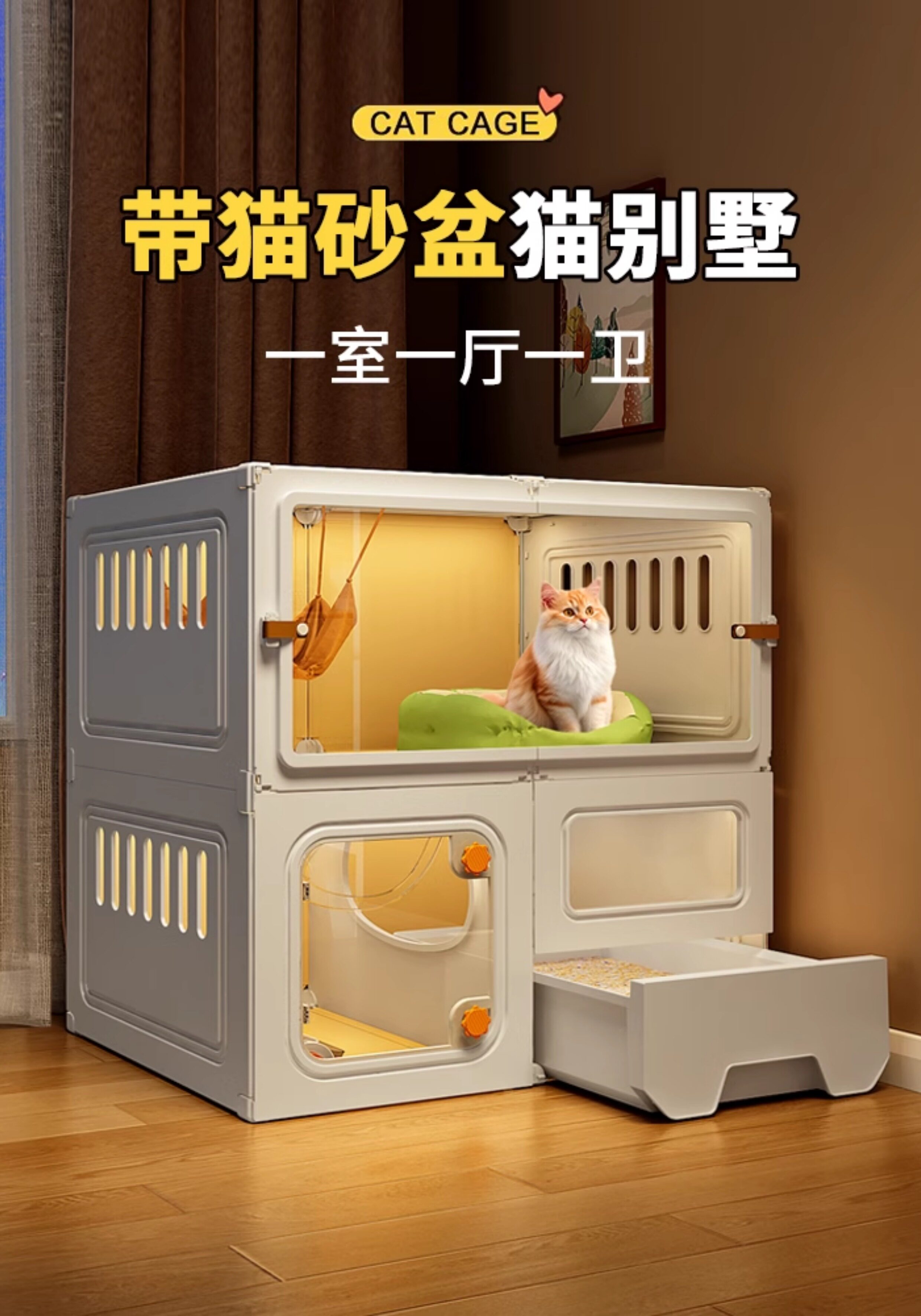 Double layer 105 45 70 main image style one bedroom one living room and one bathroom / Basic model comes with cat litter box included cat litter scoop 6115544695664