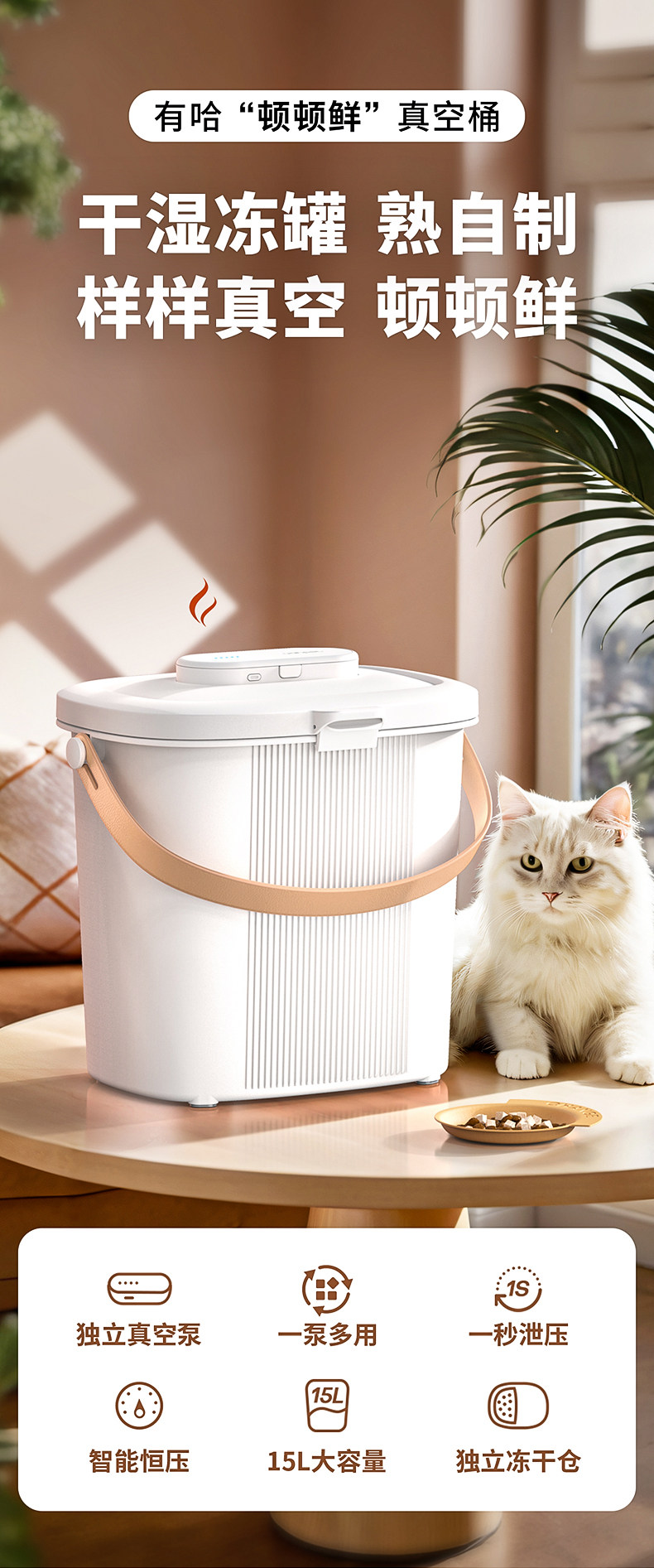 【UAH 有哈】智能真空寵物儲糧桶|自動抽氣防潮密封桶,貓糧狗糧防霉防蟲收納桶(長效保鮮居家必備)