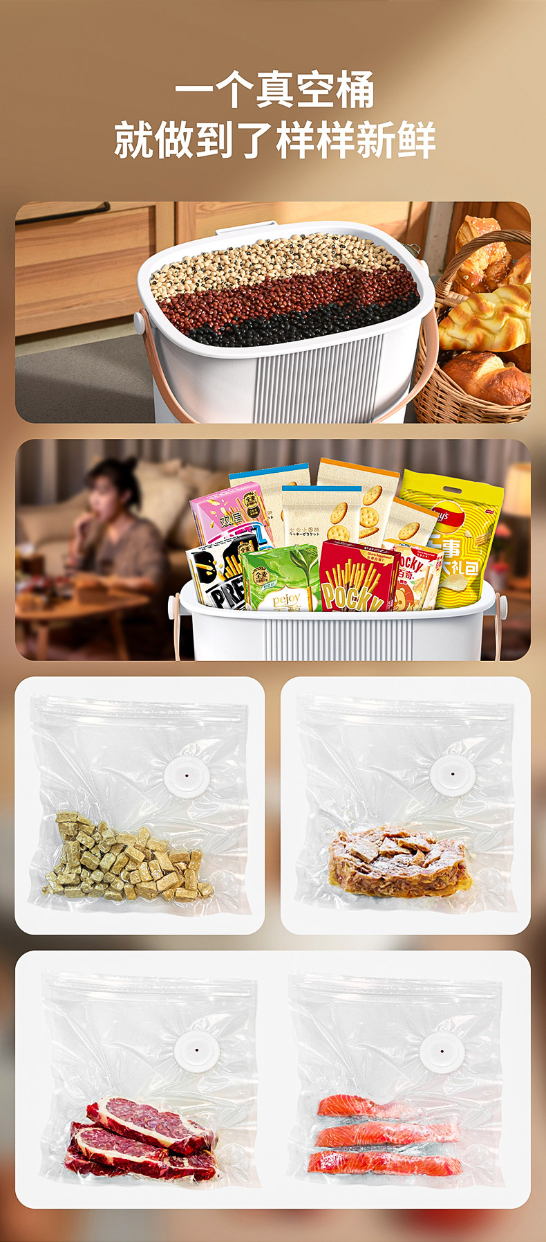 15L Large Capacity Vacuum Barrel - Vacuum Bag Set * 10+Desiccant * 6,15L Large Capacity Vacuum Barrel - Single Machine Upgraded to 2.0, Vacuum Barrel - Single Machine Upgraded to 2.0 for Freshness, Vacuum Barrel - Set Upgraded to 2.0 for Freshness