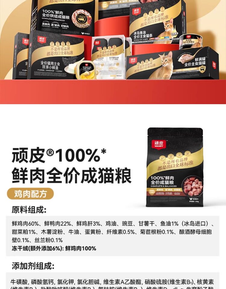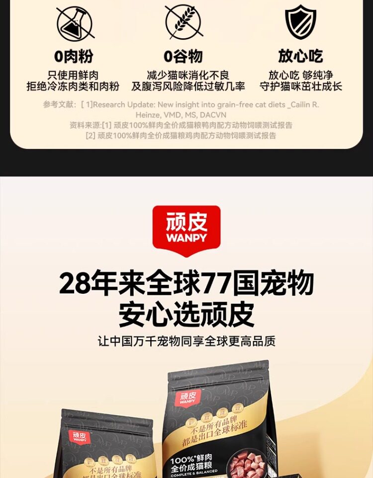【Wanpy 頑皮】100 鮮肉全價凍乾貓糧|高蛋白營養配方,添加純鮮肉凍乾顆粒,幼貓與成貓適用之旗艦級主食,100% 鮮肉研發、無穀低敏的營養首選