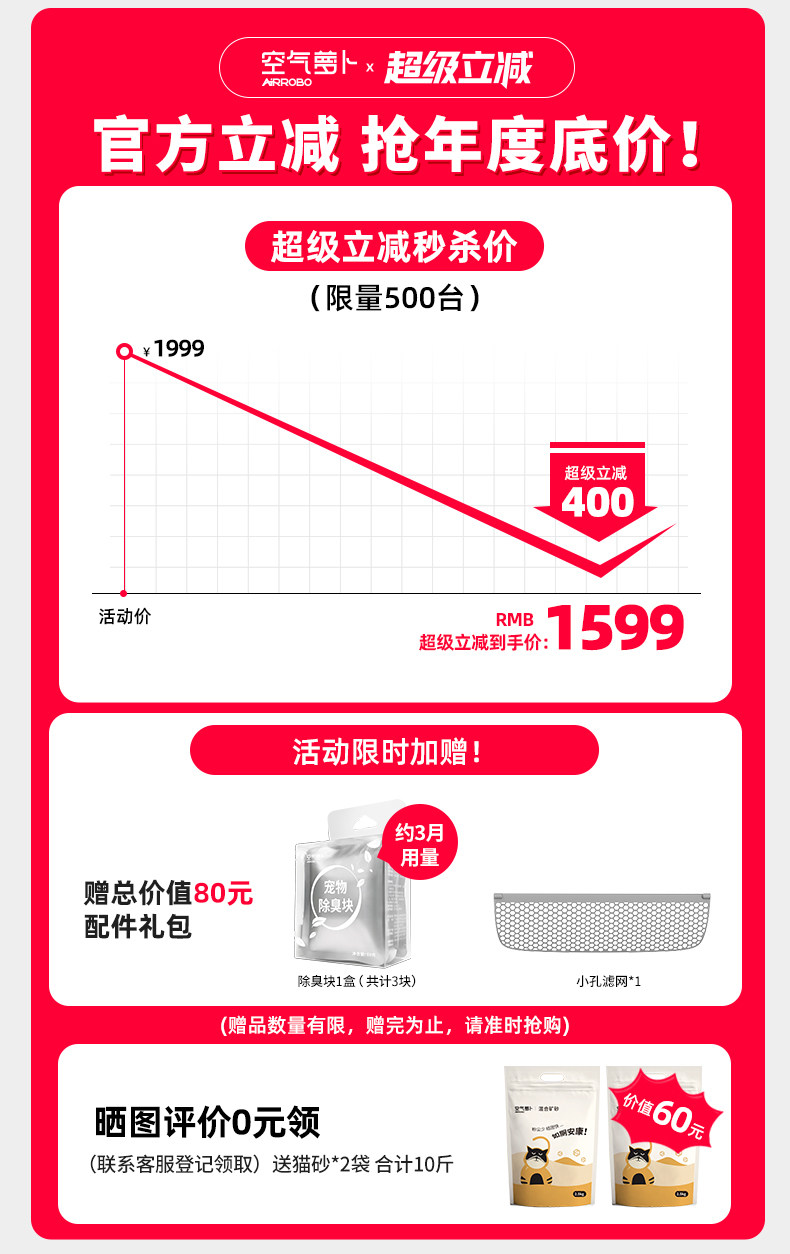 Air Carrot Super Large Automatic Cat litter Box C40 Worry Free Set Intelligent Cat litter Box C40+Accessories Gift Pack