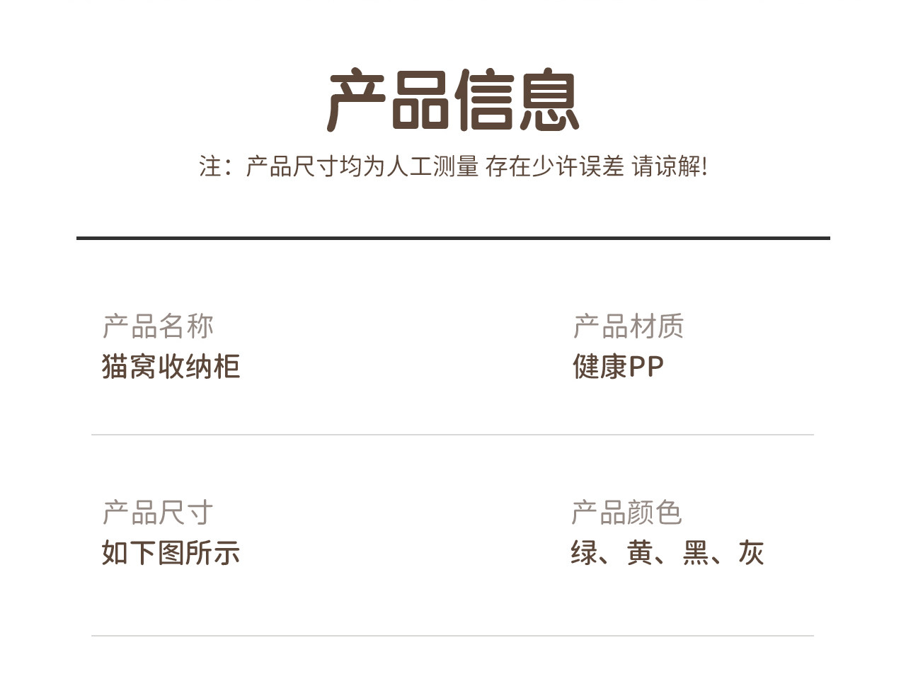| color classification | First layer cat nest - gray, first layer cat nest - yellow, first layer cat nest - green, first layer cat nest - black, second layer cat nest - gray, second layer cat nest - yellow, second layer cat nest - green, second layer cat nest - black, first layer cat nest+small door storage - gray, first layer cat nest+small door storage - yellow, first layer cat nest+small door storage - green, first layer cat nest+small door storage - black, second layer cat nest+small door storage - gray, second layer cat nest+small door storage - yellow, second layer cat nest+small door storage - green, second layer cat nest+small door storage - green, - Black, first floor cat nest+large door storage - gray, first floor cat nest+large door storage - yellow, first floor cat nest+large door storage - green, first floor cat nest+large door storage - black, second floor cat nest+large door storage - gray, second floor cat nest+large door storage - yellow, second floor cat nest+large door storage - green, second floor cat nest+large door storage - black |