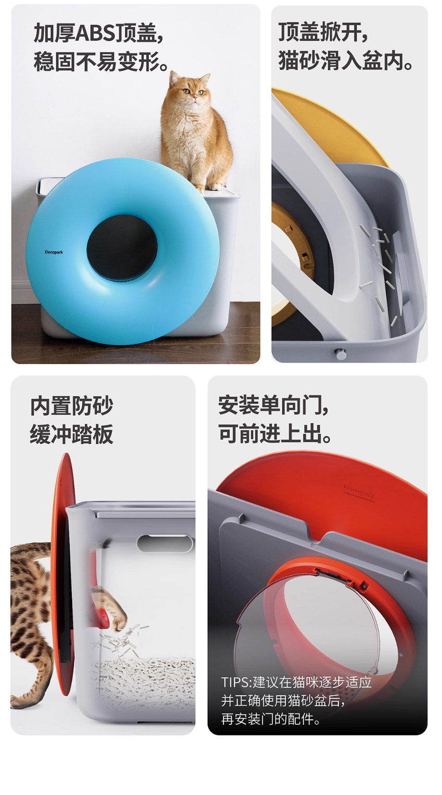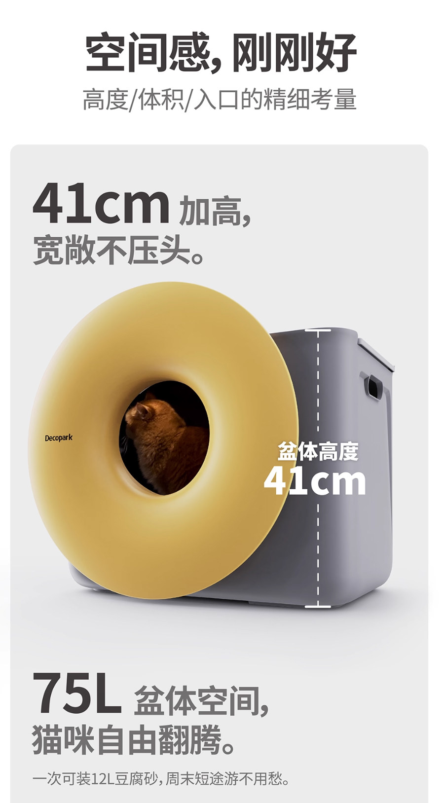 【Decopark 呆可趴可】半封閉特大號貓砂盆|獨家防漏尿、防噴濺設計,高圍欄頂入式極致控砂,徹底隔絕異味的大空間貓廁所(解決漏尿/帶砂痛點)