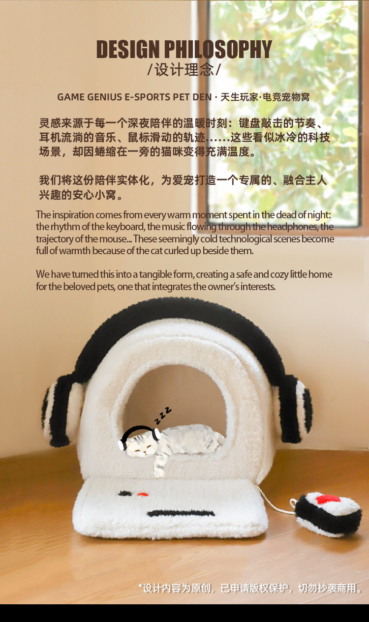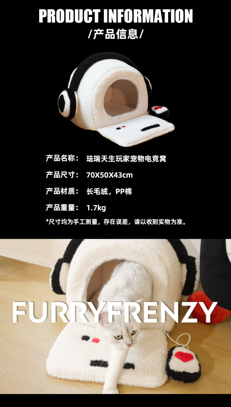 Furui Tiansheng 官方正品】電競玩家系列寵物窩|秋冬保暖半封閉深睡貓窩