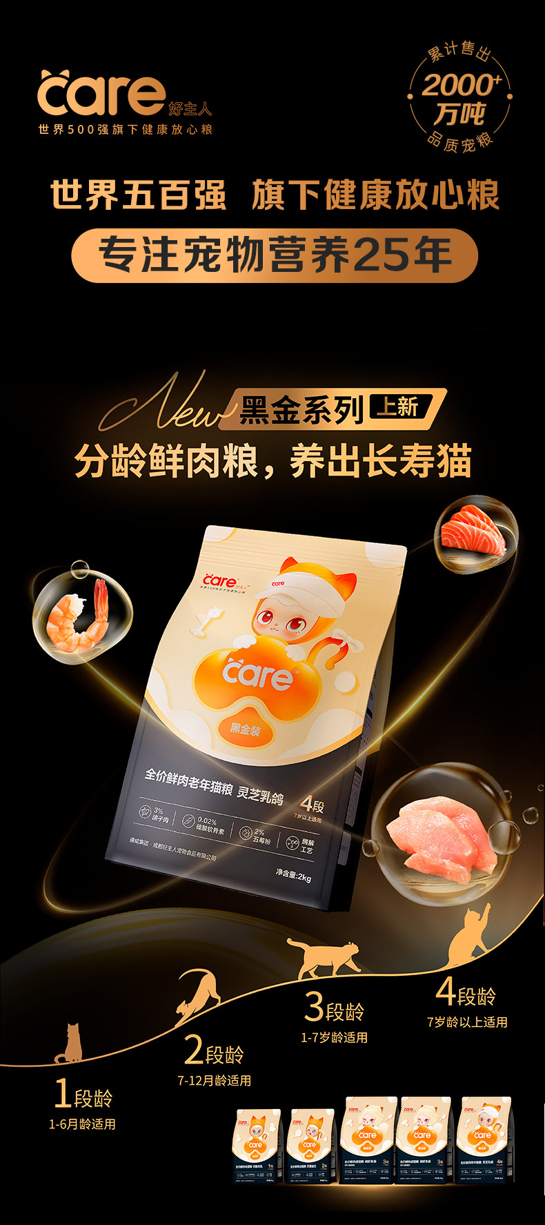 【好主人 care】階梯式 4 段老貓糧|7歲+鮮肉無穀配方,護腎養胃雙效護理,全價營養低敏老貓糧