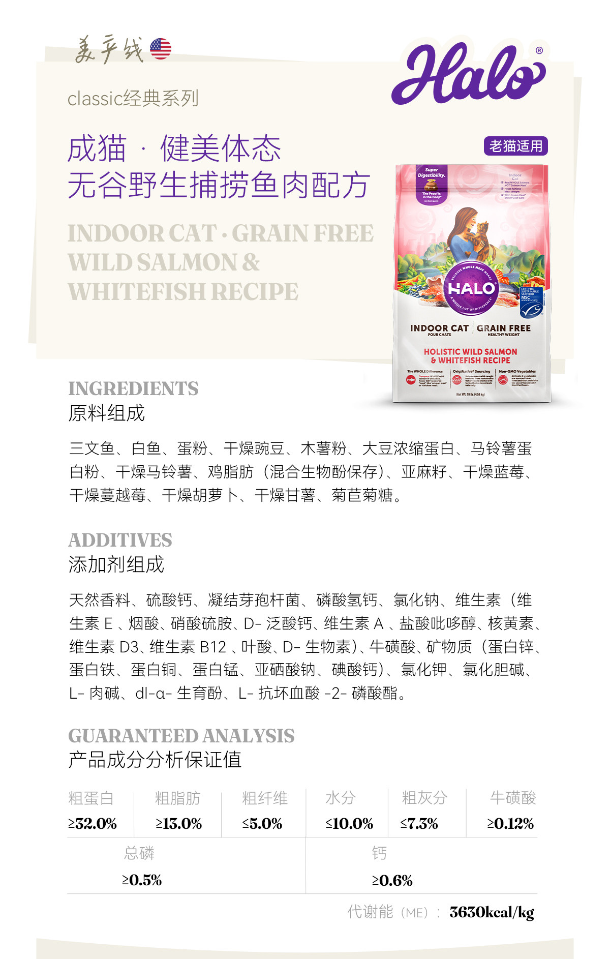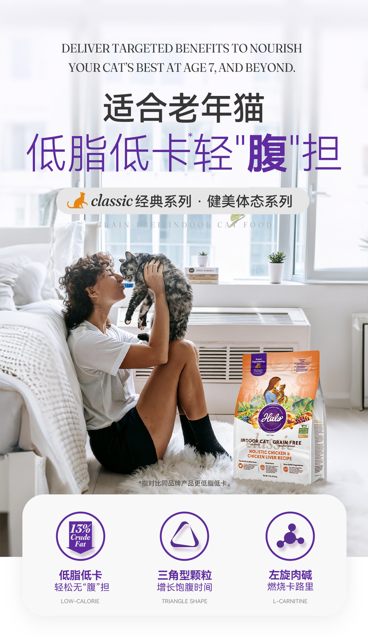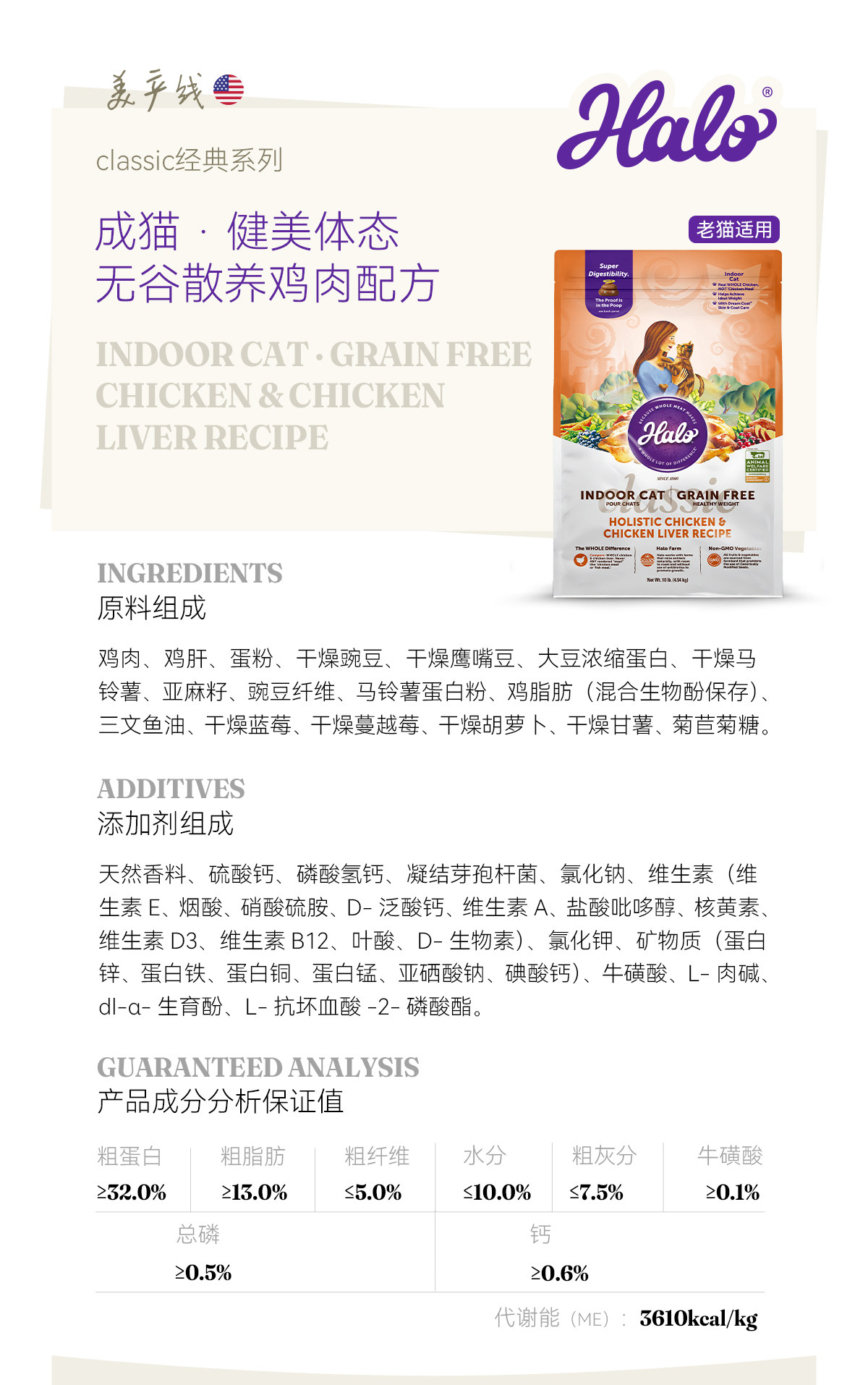 【美國 Halo 哈囉】純鮮肉熟齡貓糧|100% 不含肉粉,無穀物高消化率配方,10磅 (4.5kg) 美國原裝進口老貓健身美體糧