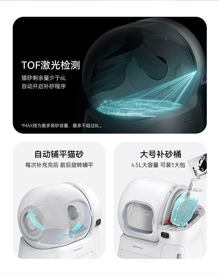 106L ultra large space Homan intelligent cat litter box bidding farewell to sand falling 106L intelligent cat litter box+sand control pedal stocking package 106L intelligent cat litter box+sodium based mineral sand * 4 bags Double 11 hot selling list TOP1 pull-out three proof pad newly upgraded sand bin structure, pioneering automatic sand replenishment/intimate home delivery/2-year home warranty