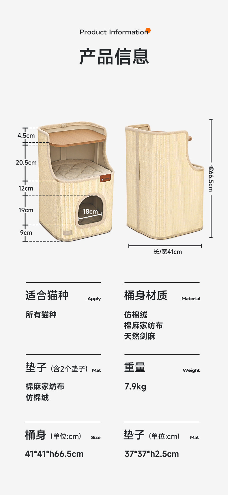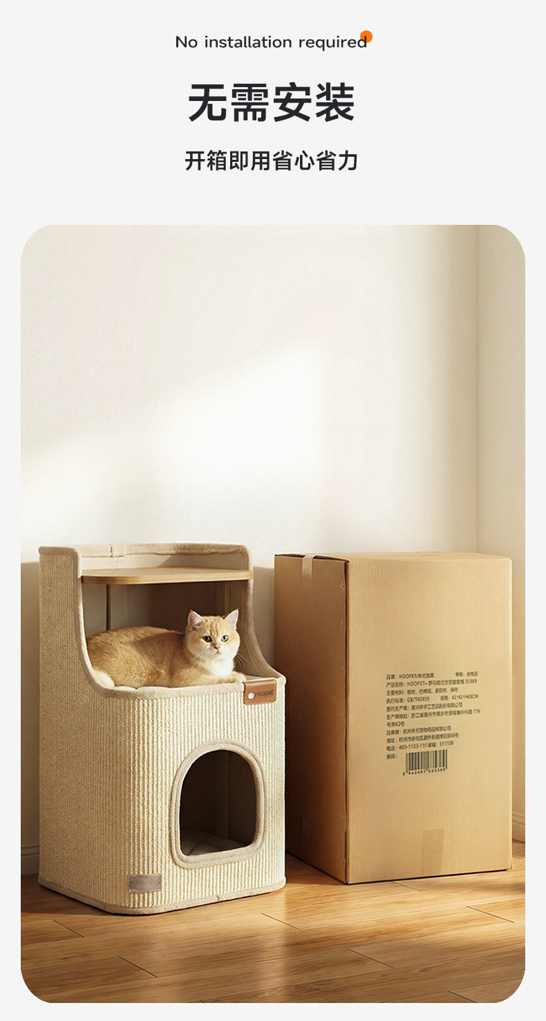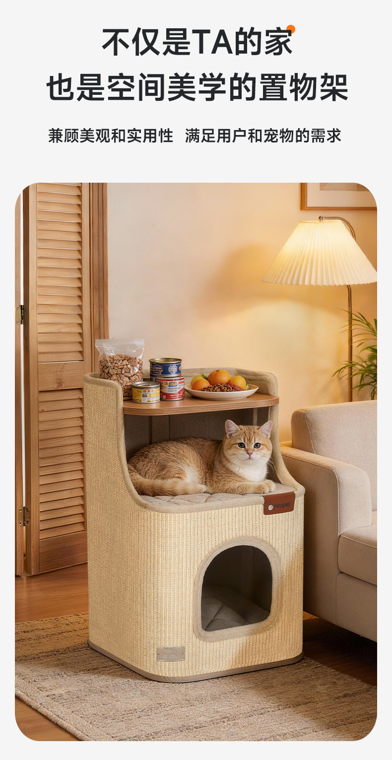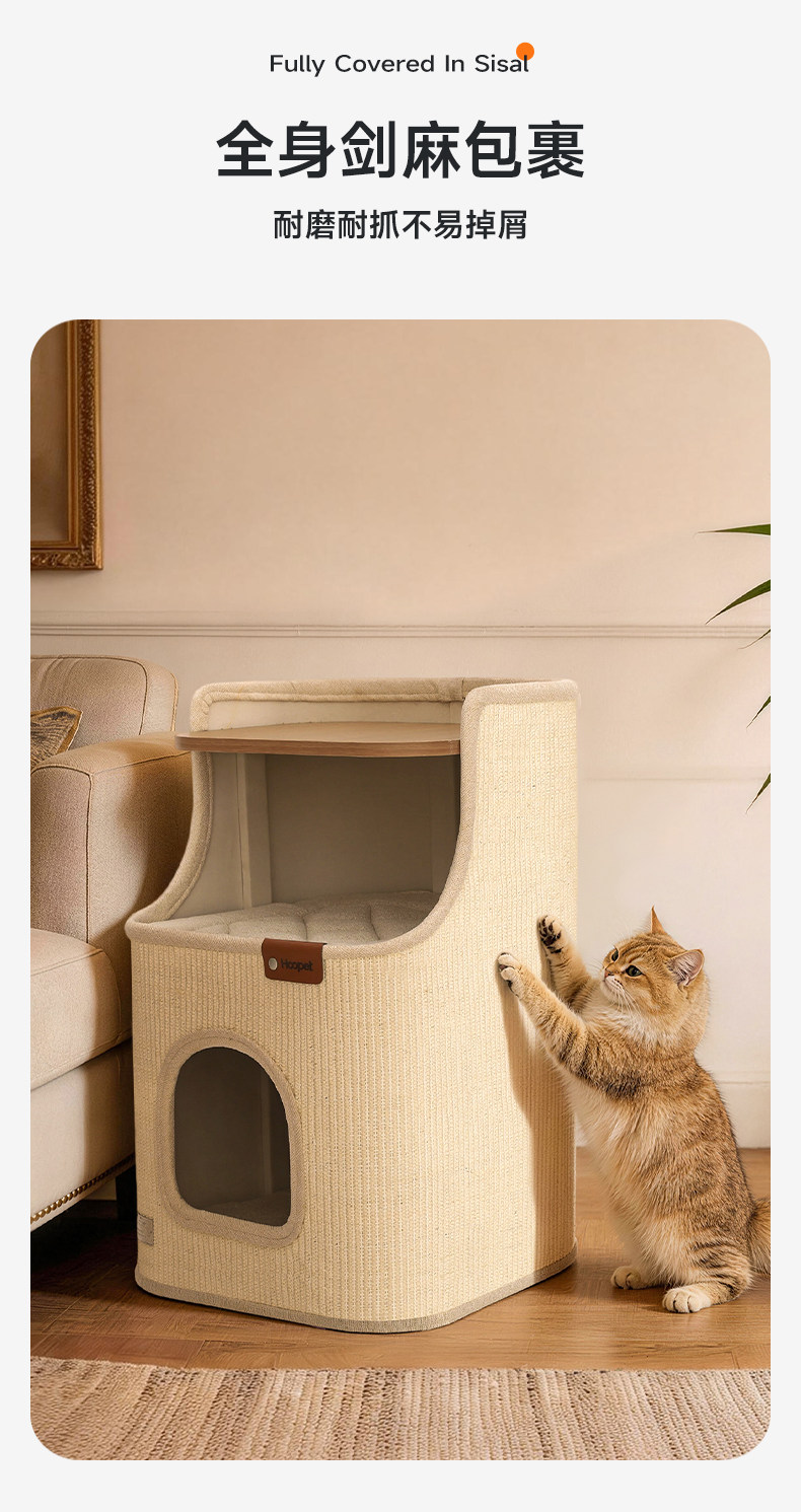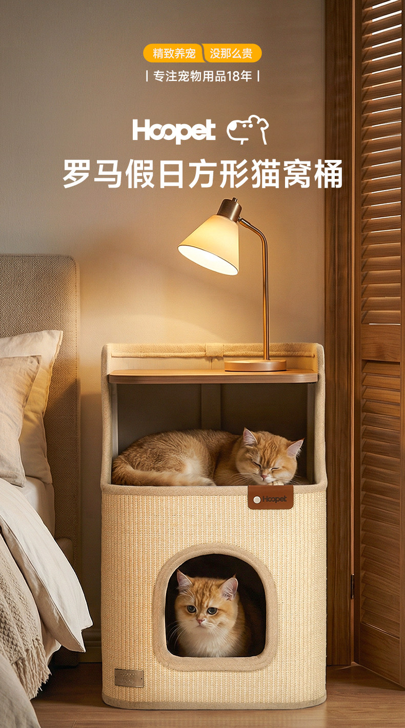 Hoopet 羅馬假期劍麻桶|貓抓板一體式貓窩床頭櫃室內爬架