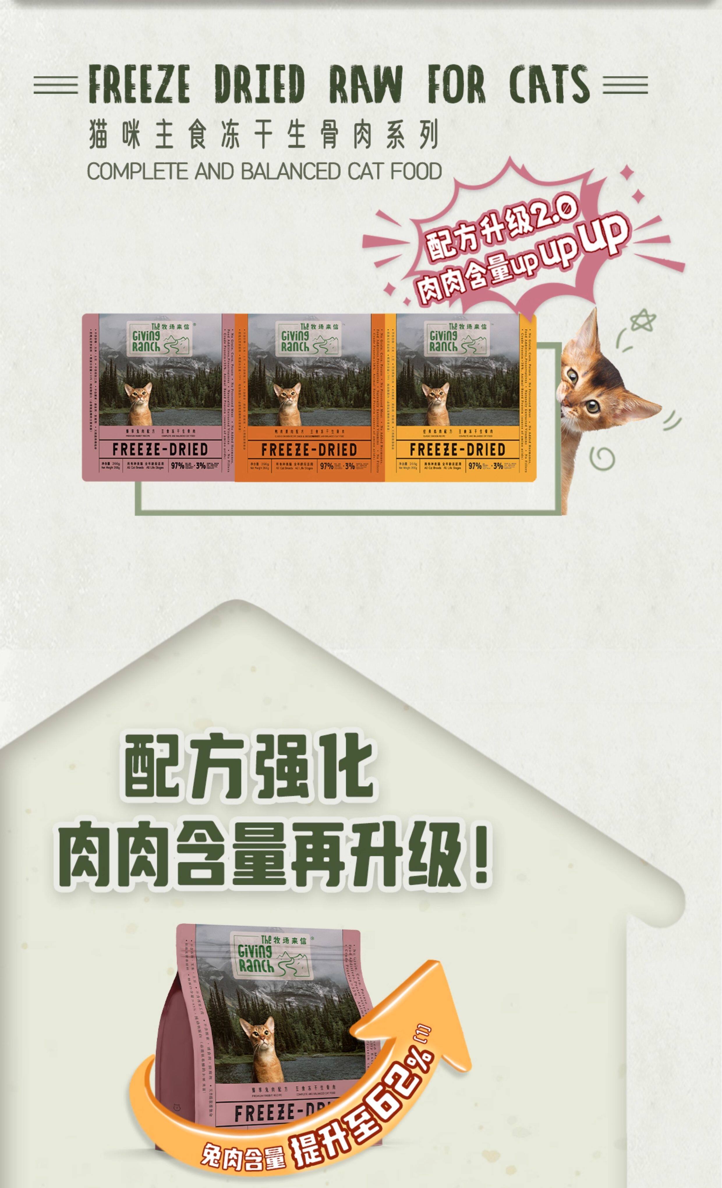 【牧場來信】全價生骨肉主食凍乾 266g|低敏兔肉配方,全齡幼貓成貓適用