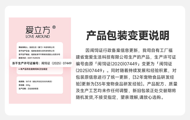 | Production license number/import registration number | Fujian Feeding Certificate (2025) 07449 |