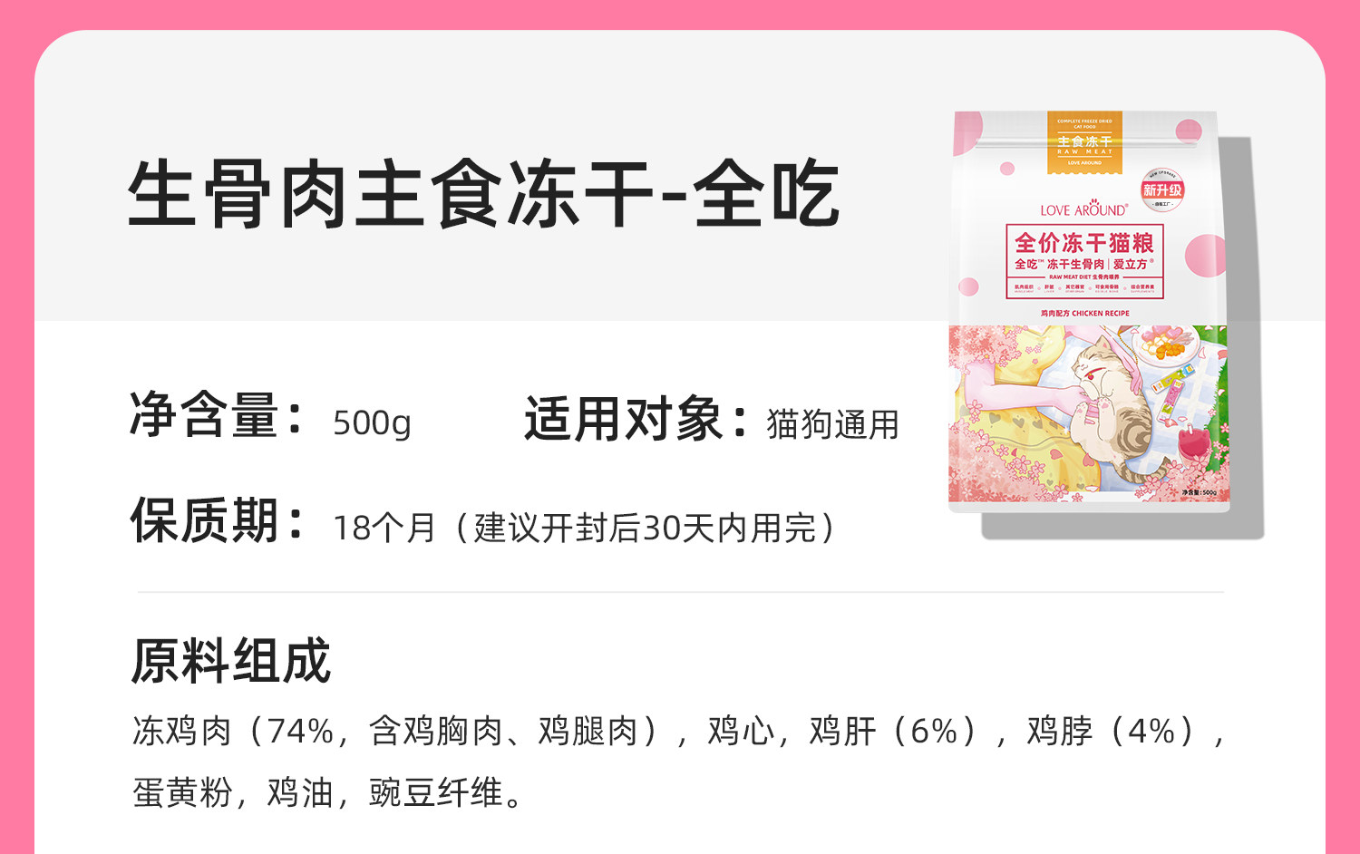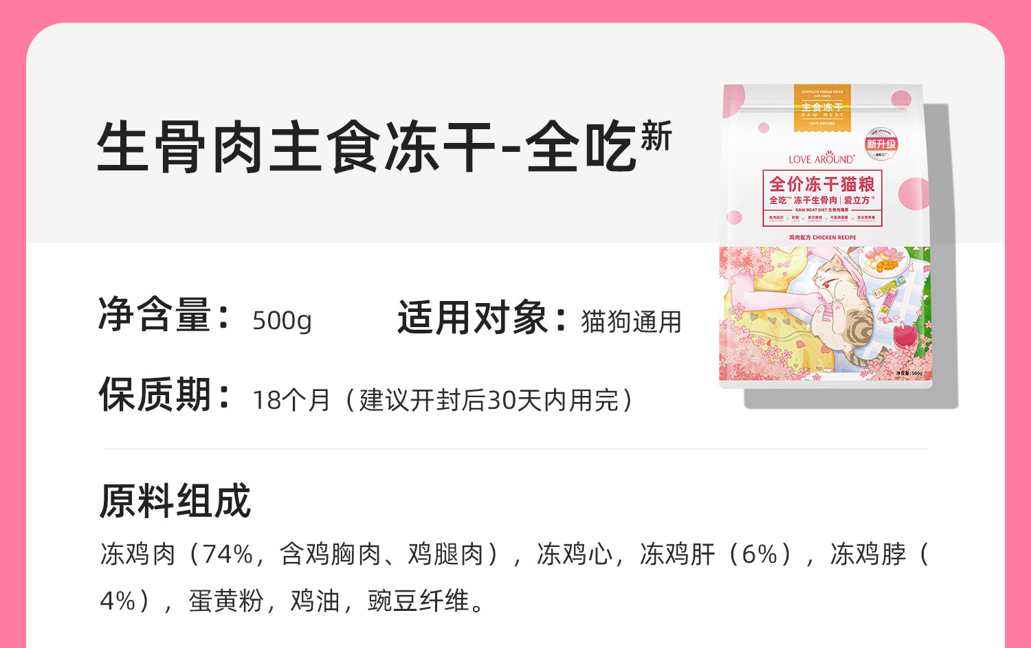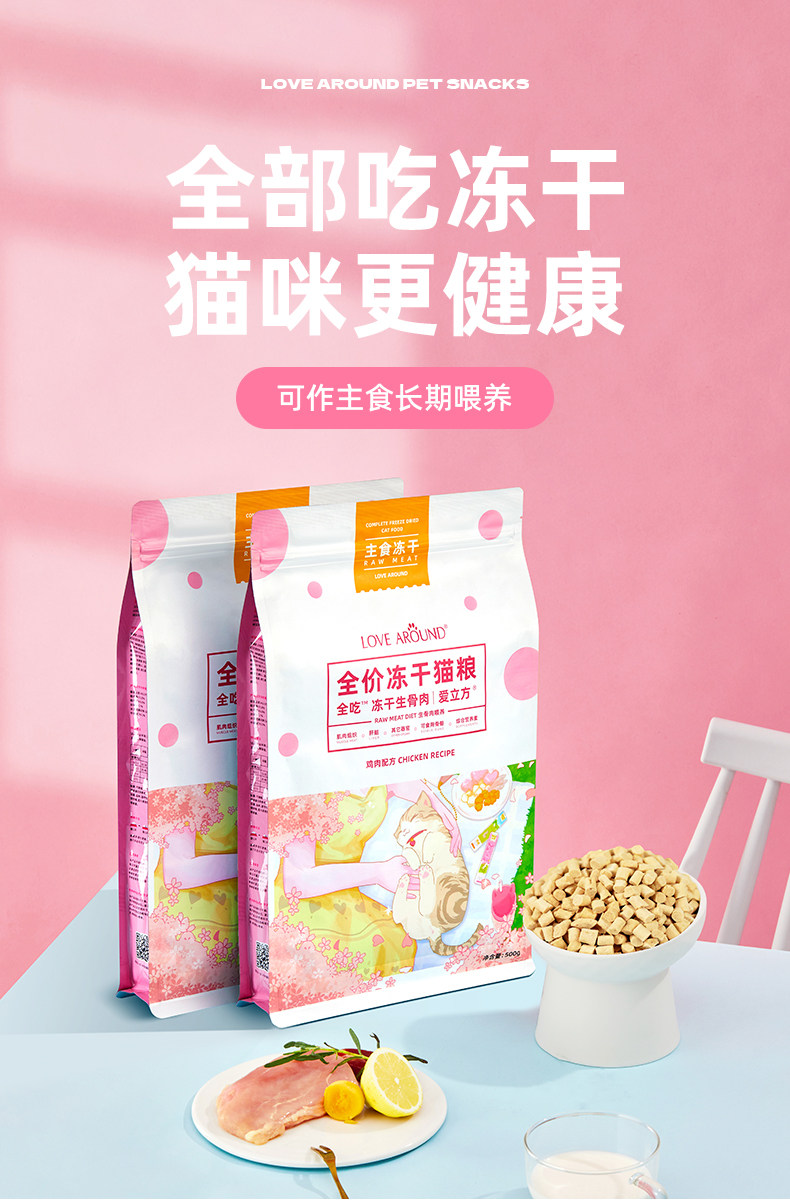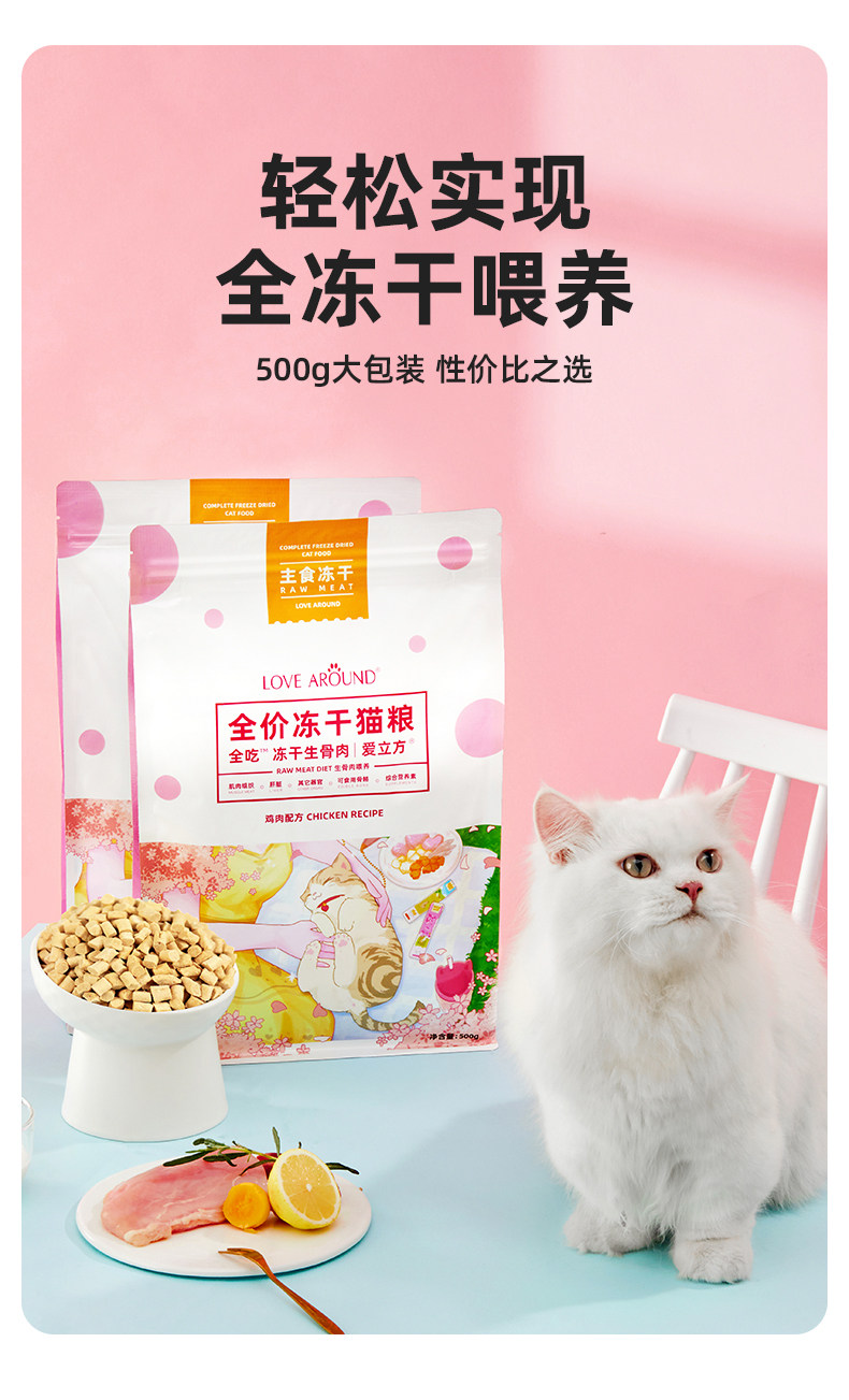 【愛立方 Love Cube】全價生骨肉主食凍乾 500g|專業生食配方,幼貓成貓全齡通用