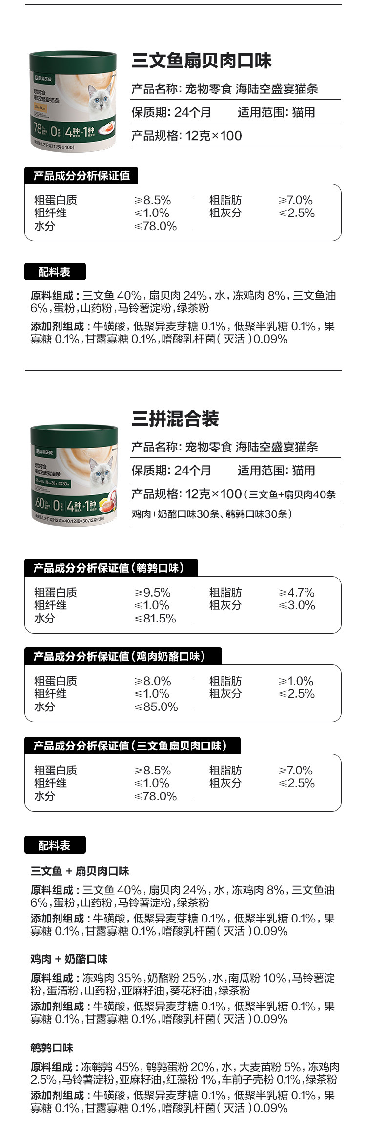 160 pieces of hypoallergenic stomach protection cat strips - mixed flavor fresh meat selection of 60 full price staple cat strips - mixed flavor prebiotics for strong intestinal health 100 pieces of mixed flavor prebiotics for strong intestinal health 100 pieces of salmon and scallop flavor for hydration and diuresis 120 pieces of water-soluble cat strips - mixed flavor for hydration and diuresis 120 pieces of water-soluble cat strips - chicken meat flavor