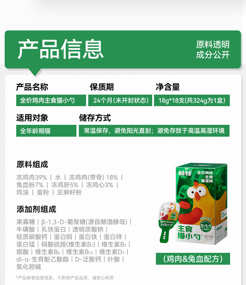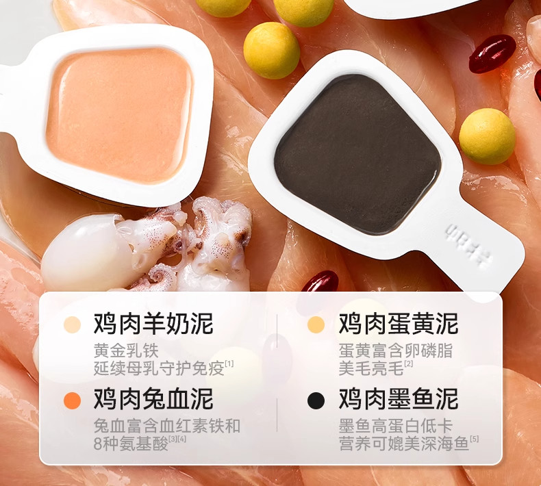 Chicken Rabbit Blood, Chicken Ink Fish, Chicken Egg Yolk, Chicken Lamb Milk Mixed Flavor, Chicken Lamb Milk+Chicken Egg Yolk