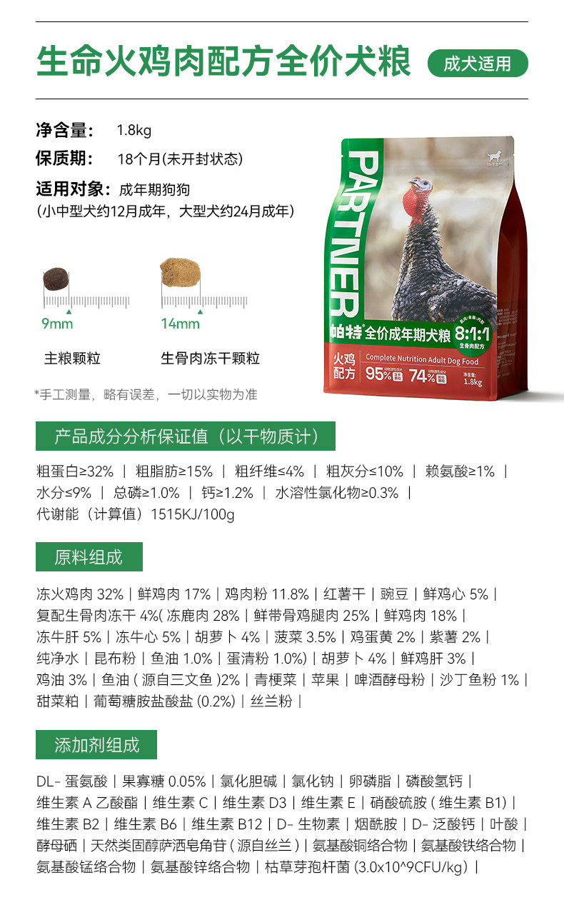 Life adult dog turkey formula for those over 12 months old / 1 8kg 2 packs for tasting5972532680913