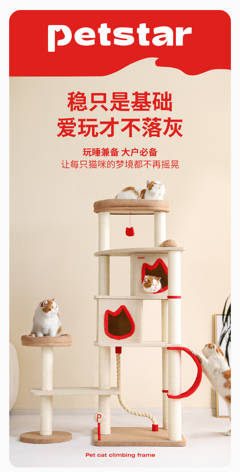Petstar 多層不佔地貓爬架|大型貓專用活動抓柱一體式貓窩